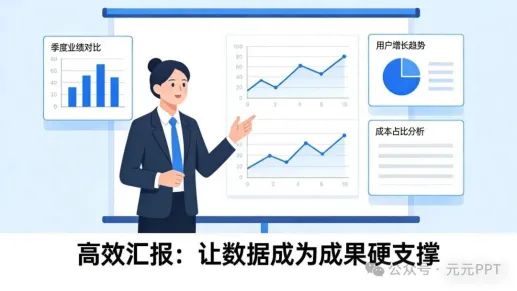 每到季度末、年末,不少职场人都陷入做汇报PPT 的焦虑:洋洋洒洒写了几十页,却抓不住工作核心;数据一堆却只会用表格展示,领导看不到成果;排版杂乱无章,重点信息被淹没。这样的无效汇报,不仅浪费时间,还让你的工作成果大打折扣。