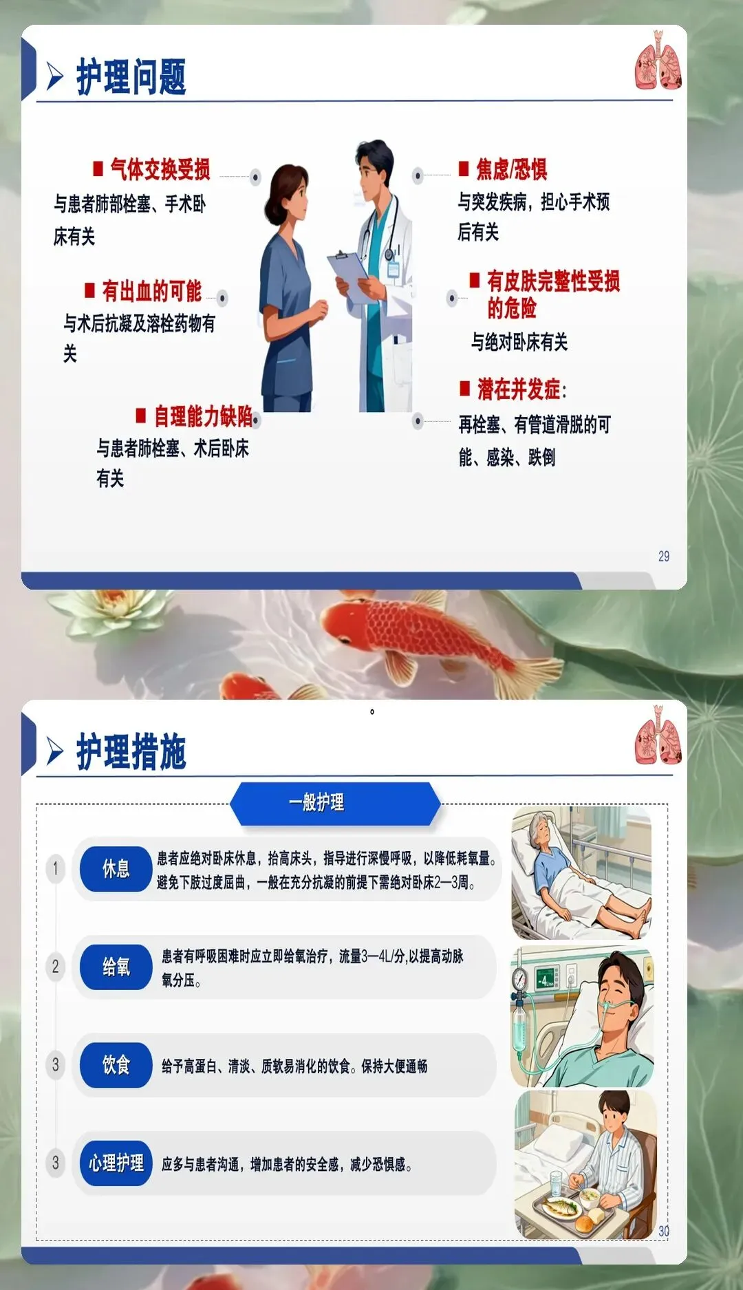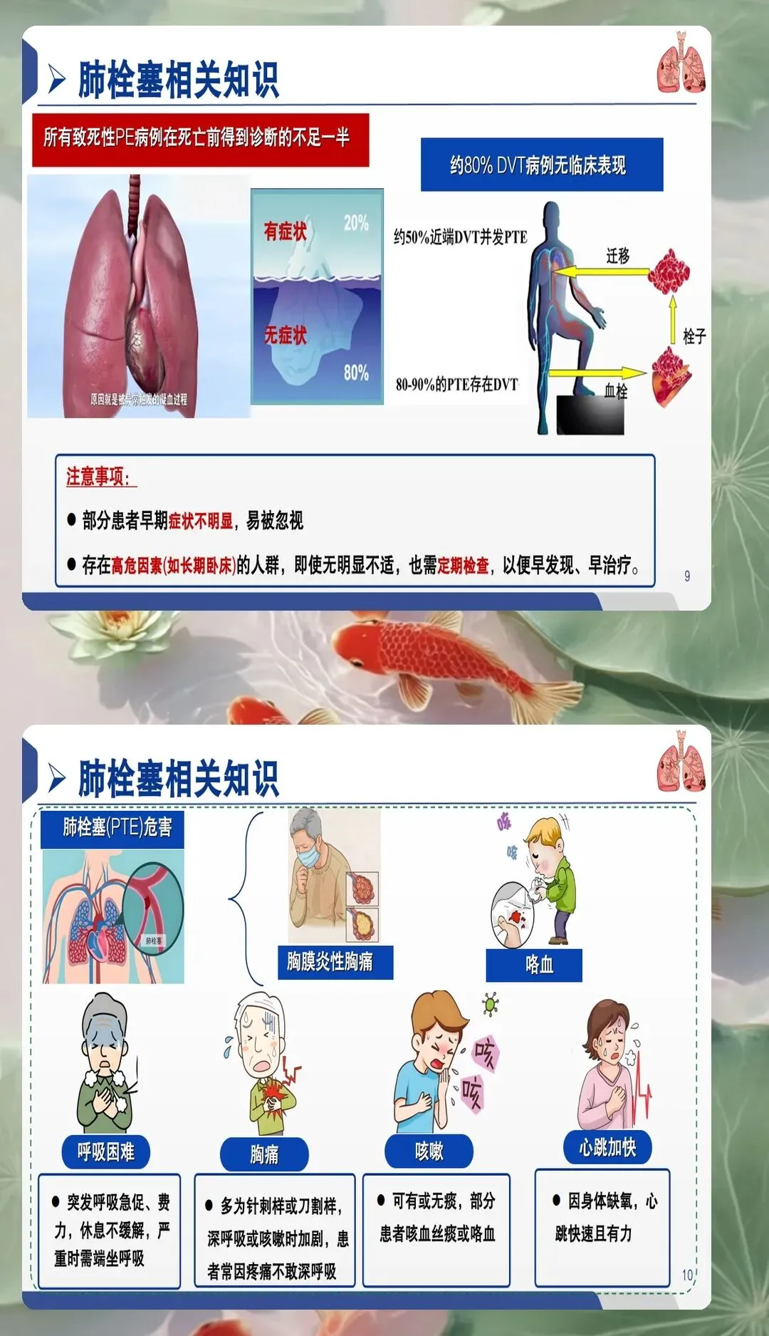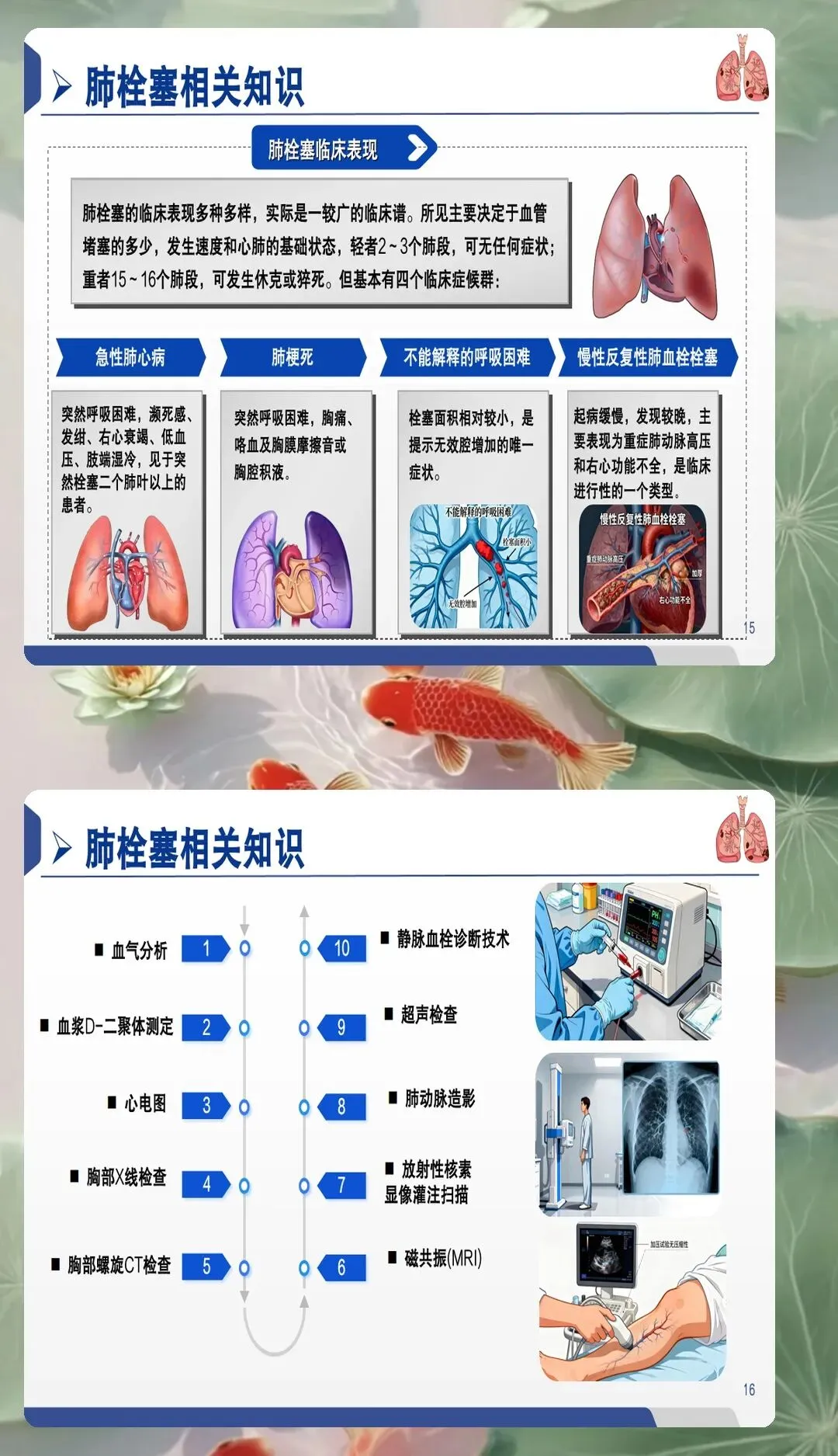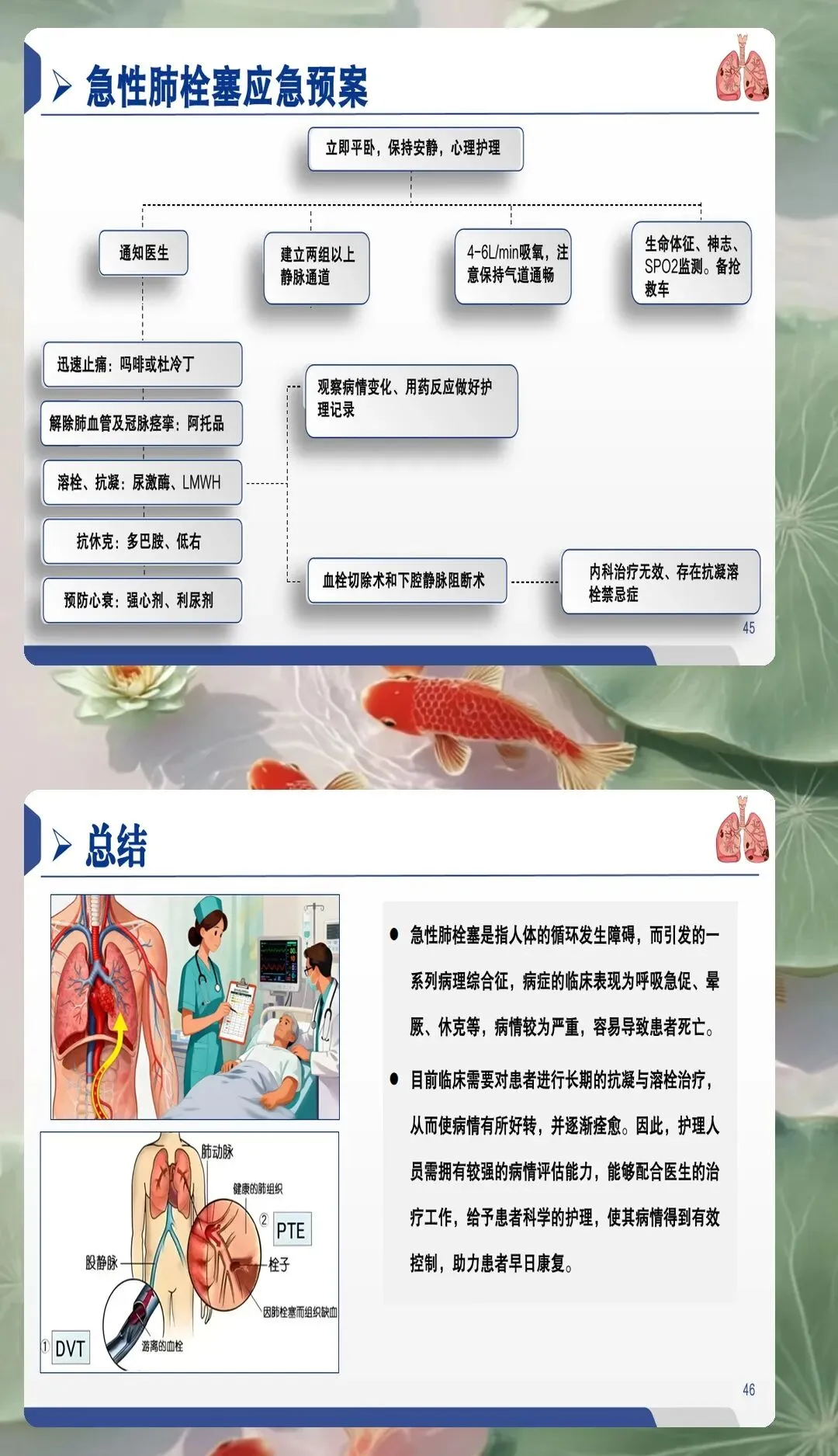 早期风险评估是PTE护理的首要环节。护理人员应具备高度的风险意识,对存在深静脉血栓形成病史、近期手术、长期卧床、恶性肿瘤、妊娠期等高危因素的患者进行重点监护。采用Wells评分、Geneva评分等标准化工具进行风险评估,结合D-二聚体、血气分析、心电图等辅助检查结果,协助医生进行早期诊断。特别要关注突发呼吸困难、胸痛、咯血、心悸等典型症状的鉴别,同时注意观察患者面色、呼吸频率、血氧饱和度等客观指标的变化,建立快速反应机制,缩短诊断时间。