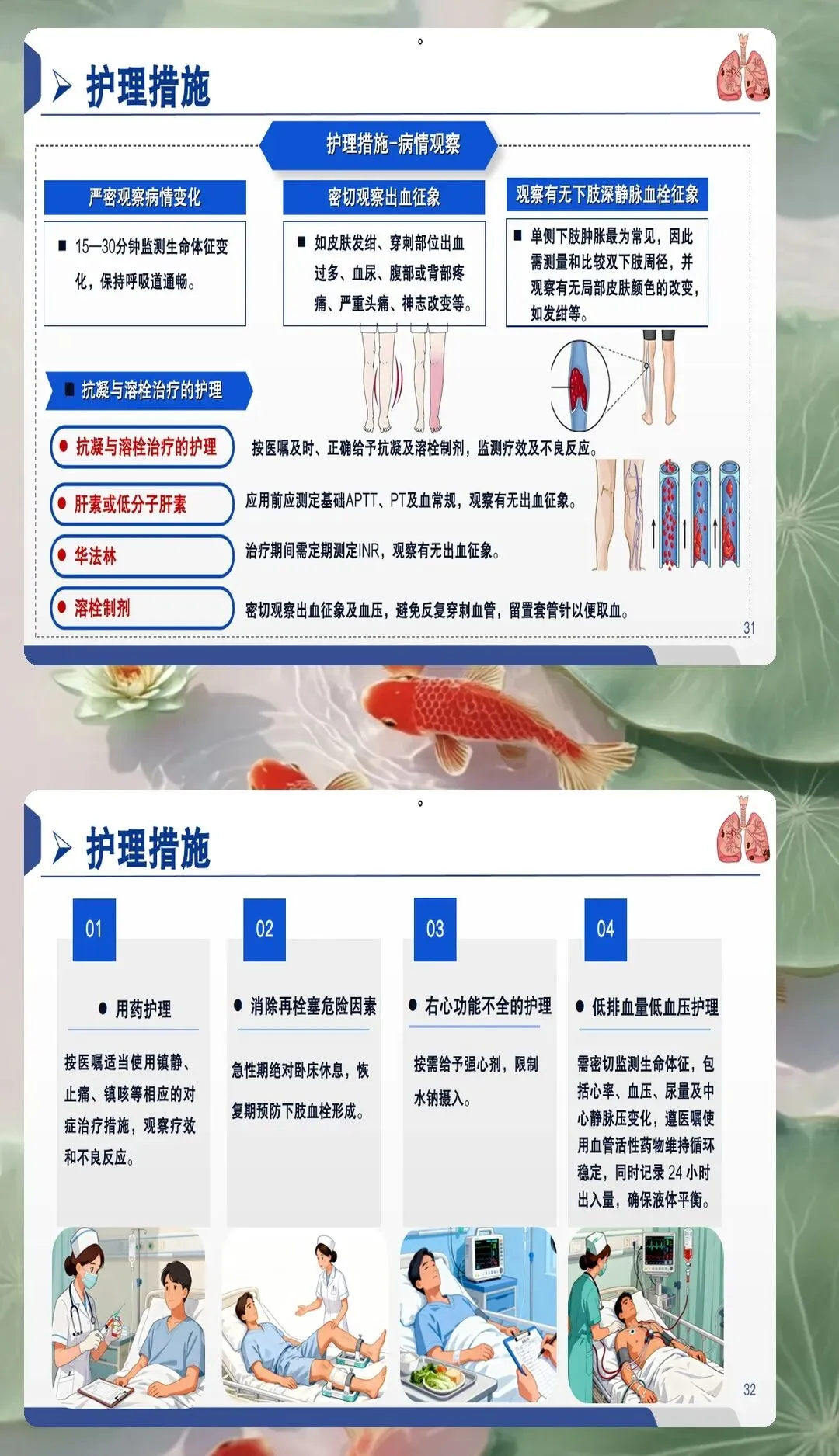 抗凝治疗的护理管理需要精细化操作。溶栓和抗凝是PTE治疗的基础措施,护理人员需要掌握各种药物的作用特点、用法用量、不良反应及处理方法。对于接受溶栓治疗的患者,必须建立专用静脉通道,精确控制输注速度,密切观察有无出血倾向,定期监测凝血功能指标。应用低分子肝素、华法林、利伐沙班等抗凝药物时,要严格掌握适应症和禁忌症,根据体重、肾功能、年龄等因素个体化调整剂量。教会患者识别出血征象,如牙龈出血、皮肤瘀斑、黑便等,建立及时报告机制。