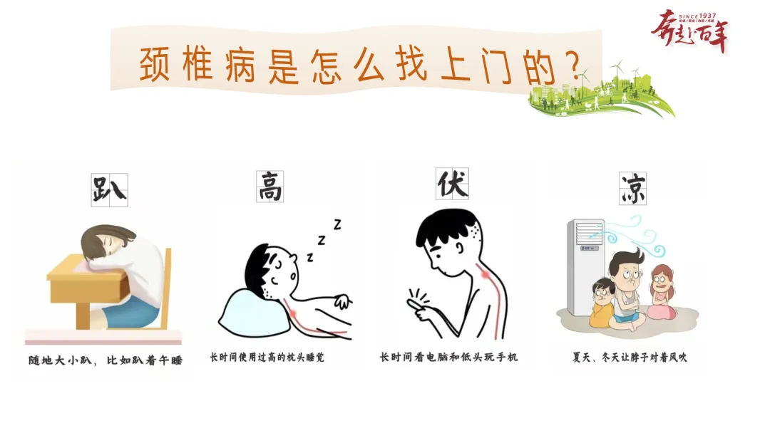内容:仅展示核心标题 “颈椎病是怎么找上门的?”,承接上一页的伤颈椎行为,引出后续内容。