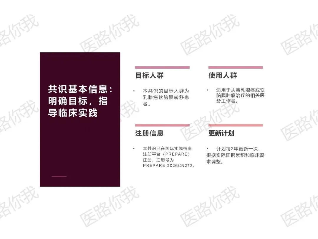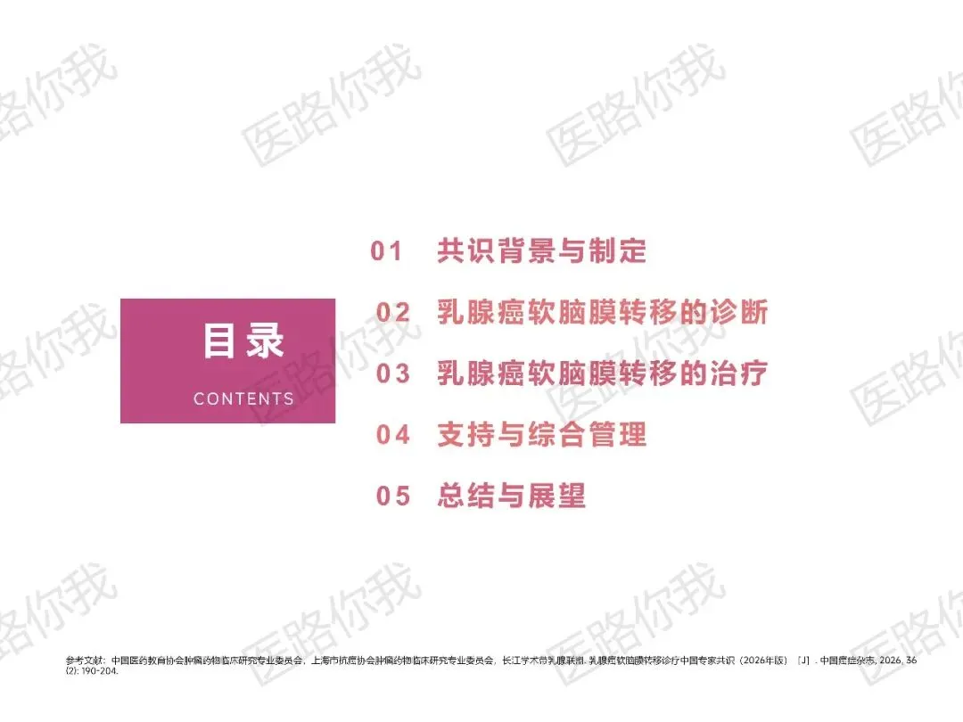 参考文献:中国医药教育协会肿瘤药物临床研究专业委员会, 等. 乳腺癌软脑膜转移诊疗中国专家共识(2026年版)[J]. 中国癌症杂志, 2026, 36 (2): 190-204.声明:本文根据网络内容进行整理,仅作知识分享,不可用于其他商业用途,如涉及版权,请及时联系小编予以删除。本文所提供的信息不能以任何方式取代专业的医疗指导,也不应被视为诊疗建议,只为帮助更多读者了解相关疾病领域的宝贵知识。