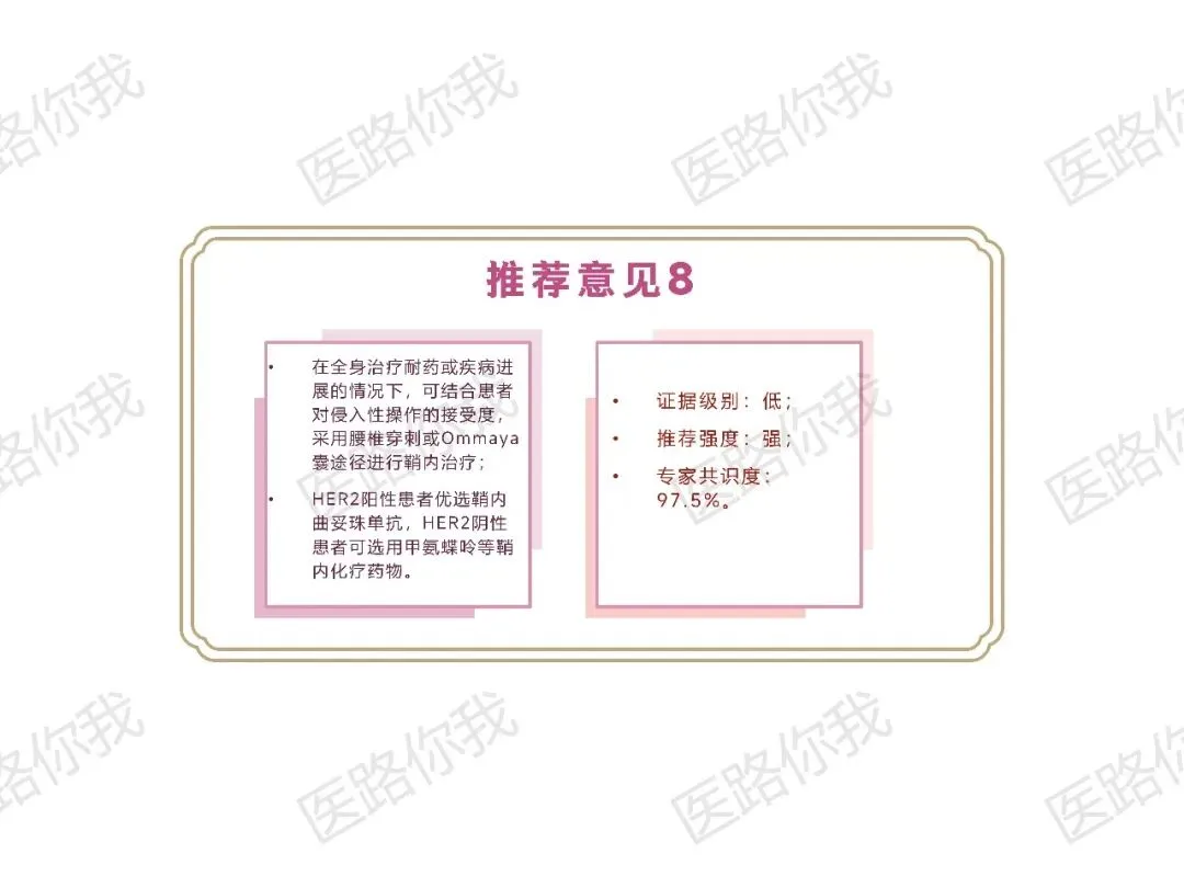 免疫与抗血管生成:帕博利珠单抗及BEEP方案(贝伐珠单抗+依托泊苷+顺铂)可作为选择。新型药物:ANG1005(穿透血脑屏障药物)及HER3-DXd纳入推荐视野。 | | |