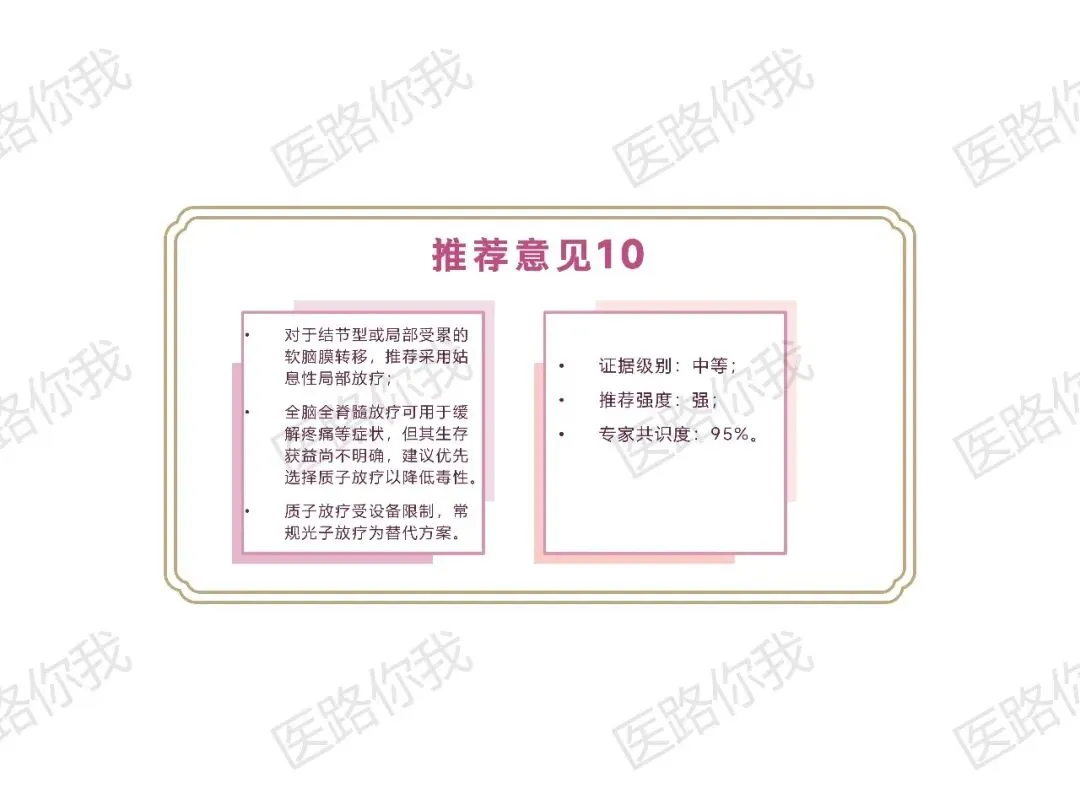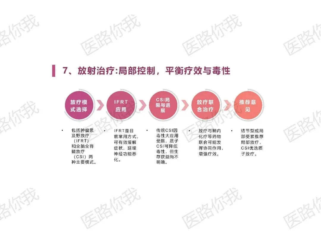 全脑全脊髓放疗(CSI):仅用于缓解症状,生存获益不明确。共识优先推荐质子放疗以降低毒性,光子放疗为备选。3. 疗效评估:引入LANO标准