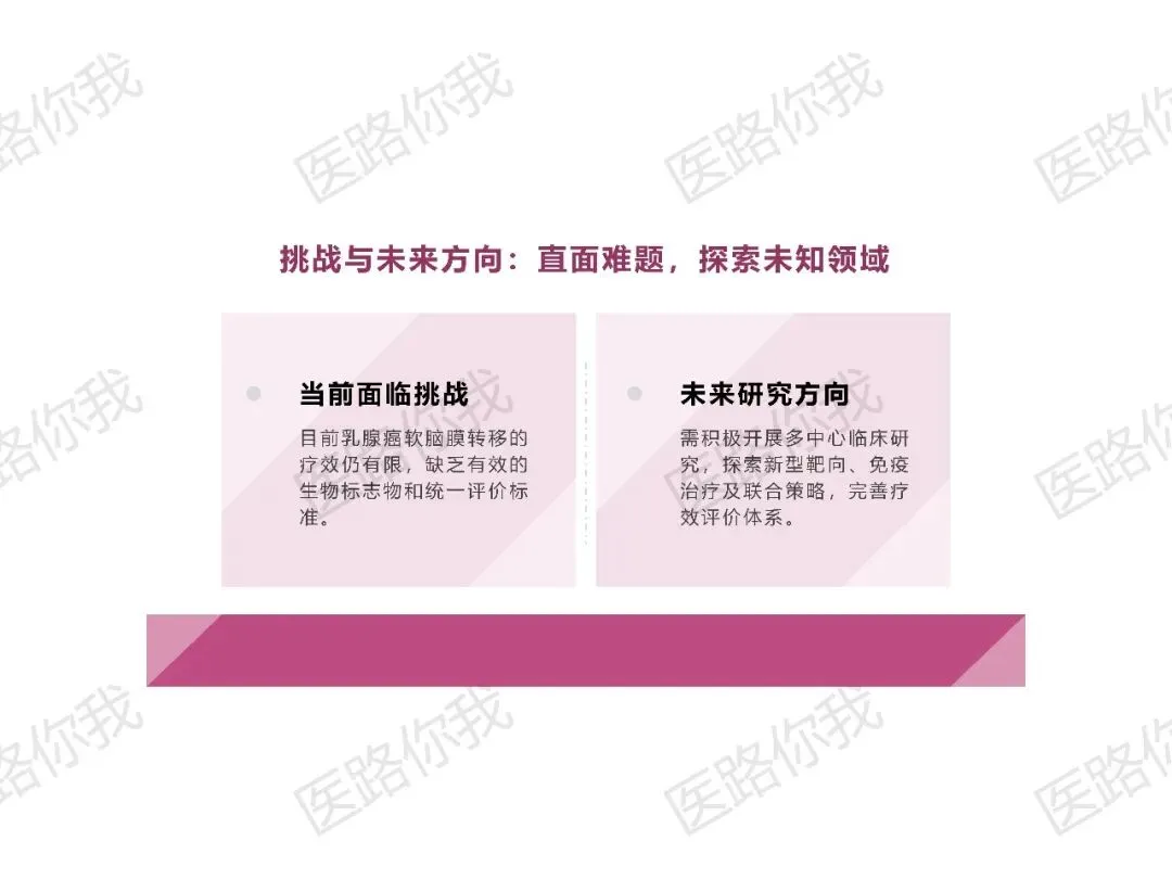 《乳腺癌软脑膜转移诊疗中国专家共识(2026年版)》不仅是诊疗规范的更新,更是治疗理念的革新。它标志着软脑膜转移的治疗已从单纯的“姑息对症”转向“精准全身治疗为主导”的新纪元。诊断前置:强调高危人群的早期筛查与重复检测的重要性。ADC为王:T-DXd等新型药物在各亚型中均展现出突破性疗效,改变了既往“无药可医”的局面。MDT价值:从诊断到治疗(内外科结合),多学科团队(MDT)是提升患者生存质量的必由之路。未来,随着更多真实世界数据的积累与新型药物的研发,我们有理由相信,乳腺癌软脑膜转移将逐步被纳入“慢性病”管理体系,为患者赢得更长的生存时间和更高的生活质量。