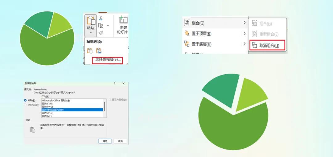 2,复制图表(可以使用快捷键Ctrl+C),点击左上角粘贴,选择性粘贴为增强型图元文件,并取消组合两次(这里同样可以使用快捷键Ctrl+shift+G).