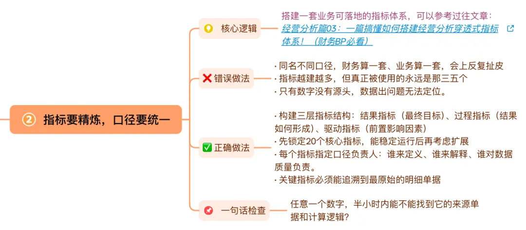 - 每月复盘一次:删掉没人看的指标,补齐缺失的口径,优化动作机制