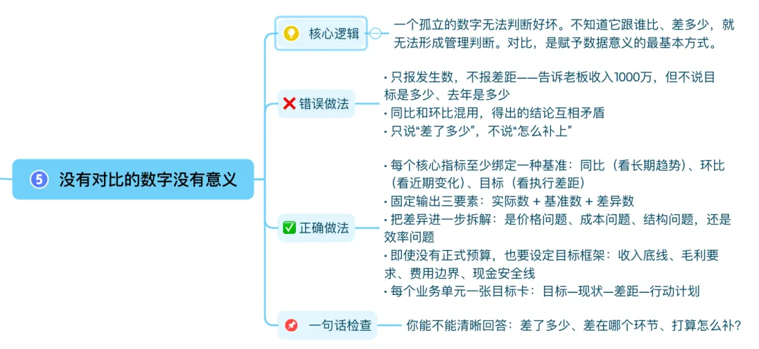 一个孤立的数字无法判断好坏。不知道它跟谁比、差多少,就无法形成管理判断。对比,是赋予数据意义的最基本方式。