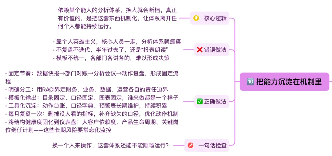 依赖某个能人的分析体系,换人就会断档。真正有价值的,是把这套东西机制化,让体系离开任何个人都能持续运行。