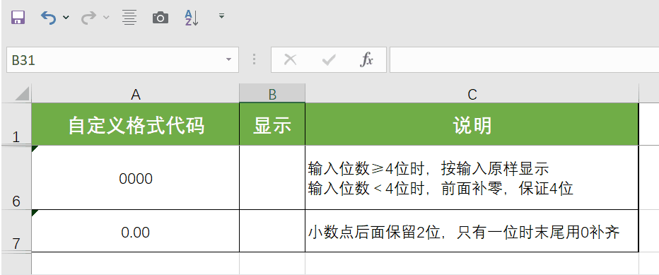 (1) 数字强制占位数 0:强制显示占位,不足位数时用0补齐。例如格式“0000”,输入123会显示0123;格式“0.00”,输入12.3会显示12.30,适合需要统一位数的场景(如编号、工号)。