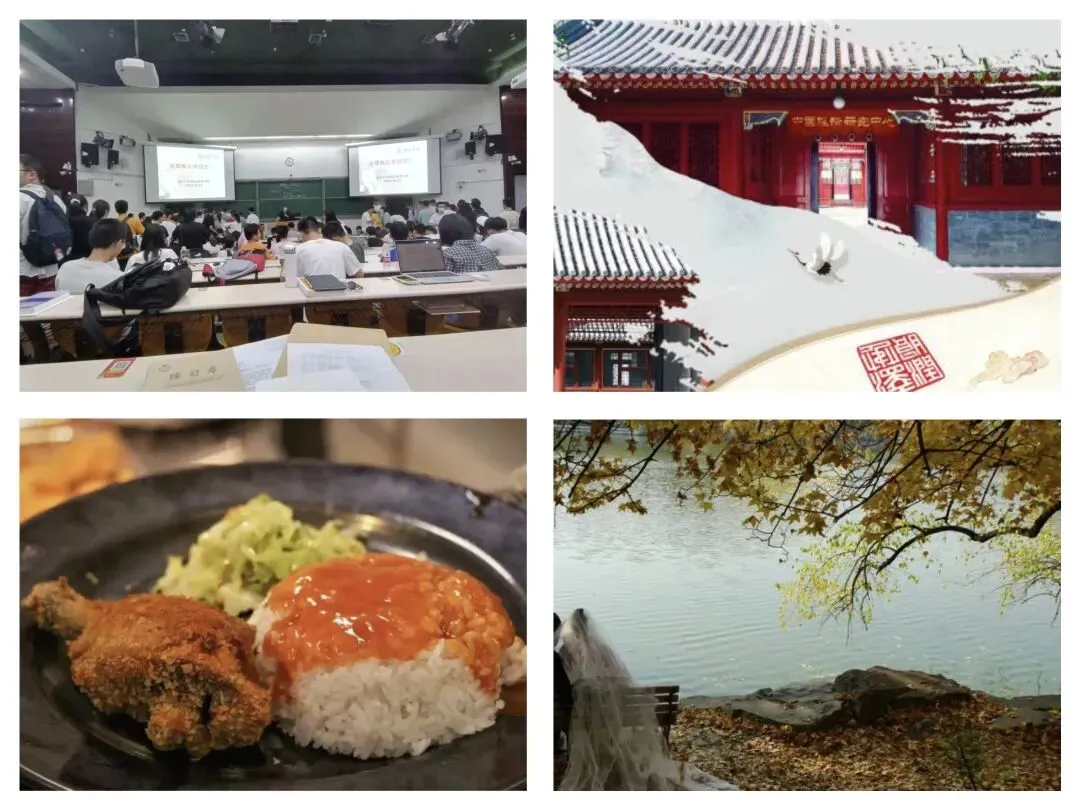 上三宝地概、修国发经双、学五食堂鸡腿饭、未名湖畔谈恋爱。