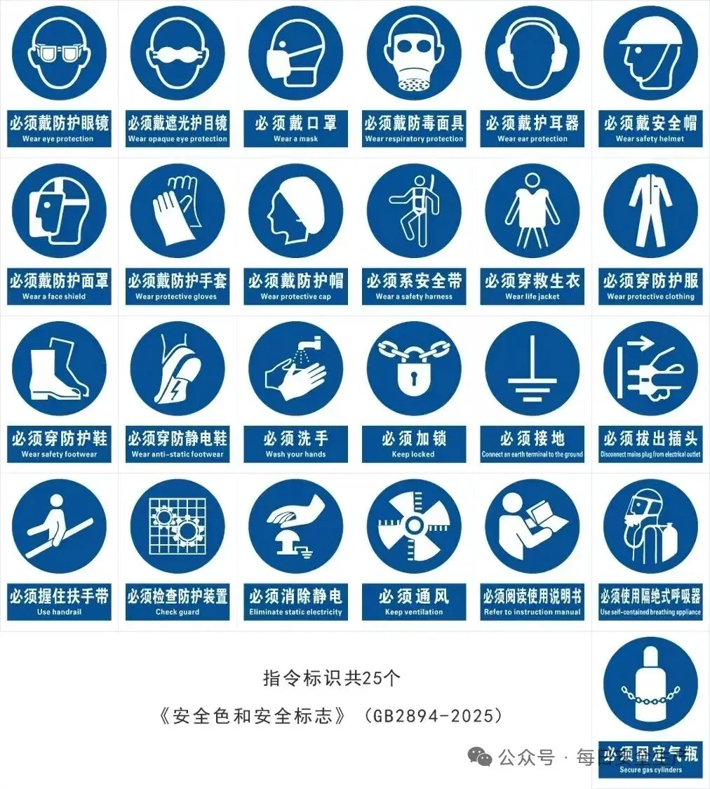蓝色警示区:指令、必须遵守区域,需按规范佩戴防护、执行操作;