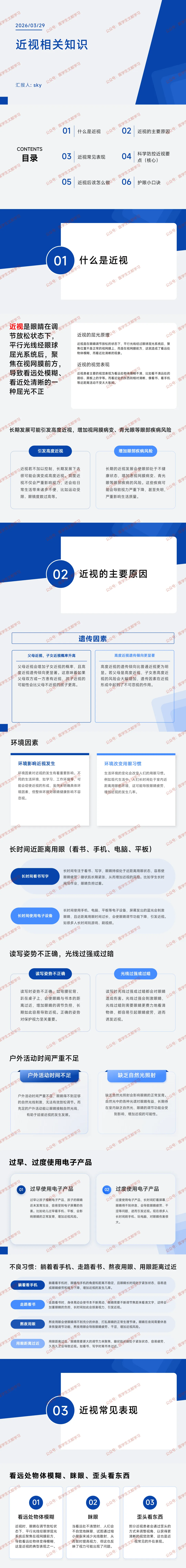 近视是眼睛在调节放松状态下,平行光线经眼球屈光系统后聚焦在视网膜前方,属于屈光不正。典型表现为看远模糊、看近清晰。长期进展可发展为高度近视,显著增加视网膜病变、青光眼等致盲性眼病风险。