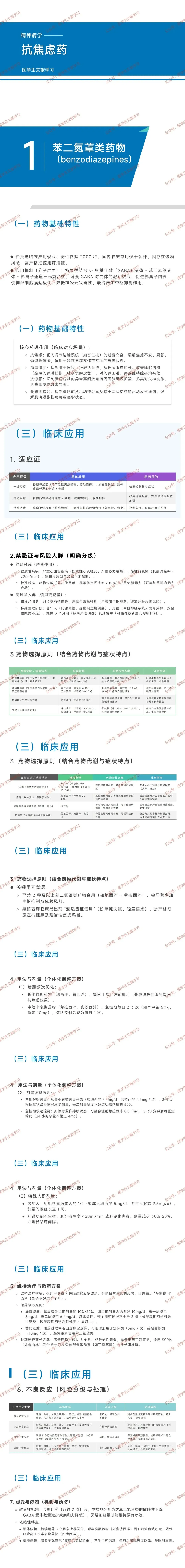 - 用法剂量:起始从最小有效剂量(地西泮 2.5mg/d),3-4 天逐步加量;老年人、肝肾功能不全者剂量减为成人 1/2-1/3;最长用药不超过 1 个月。
