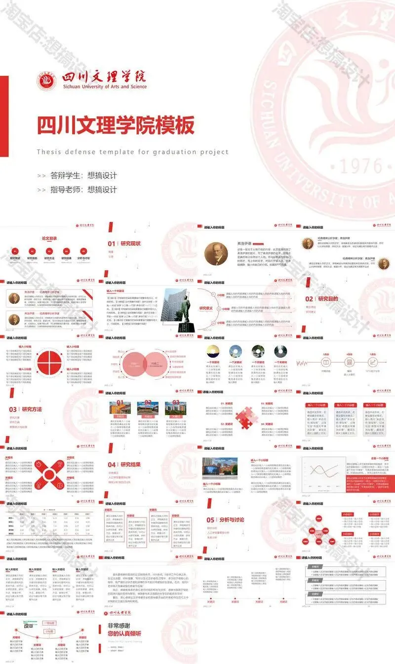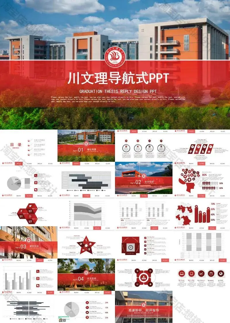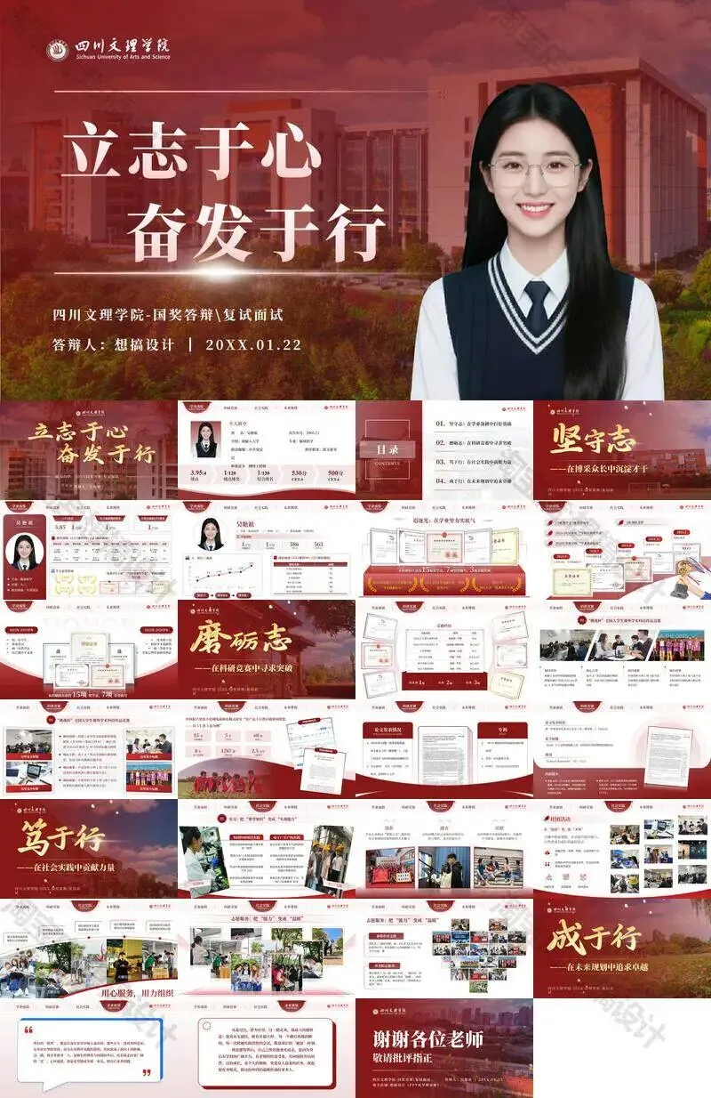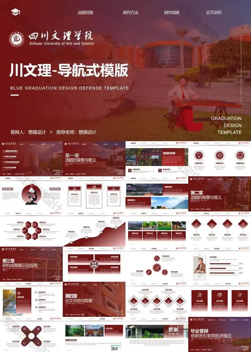 四川文理学院毕业答辩PPT模板汇报幻灯片课件总结大学生作品