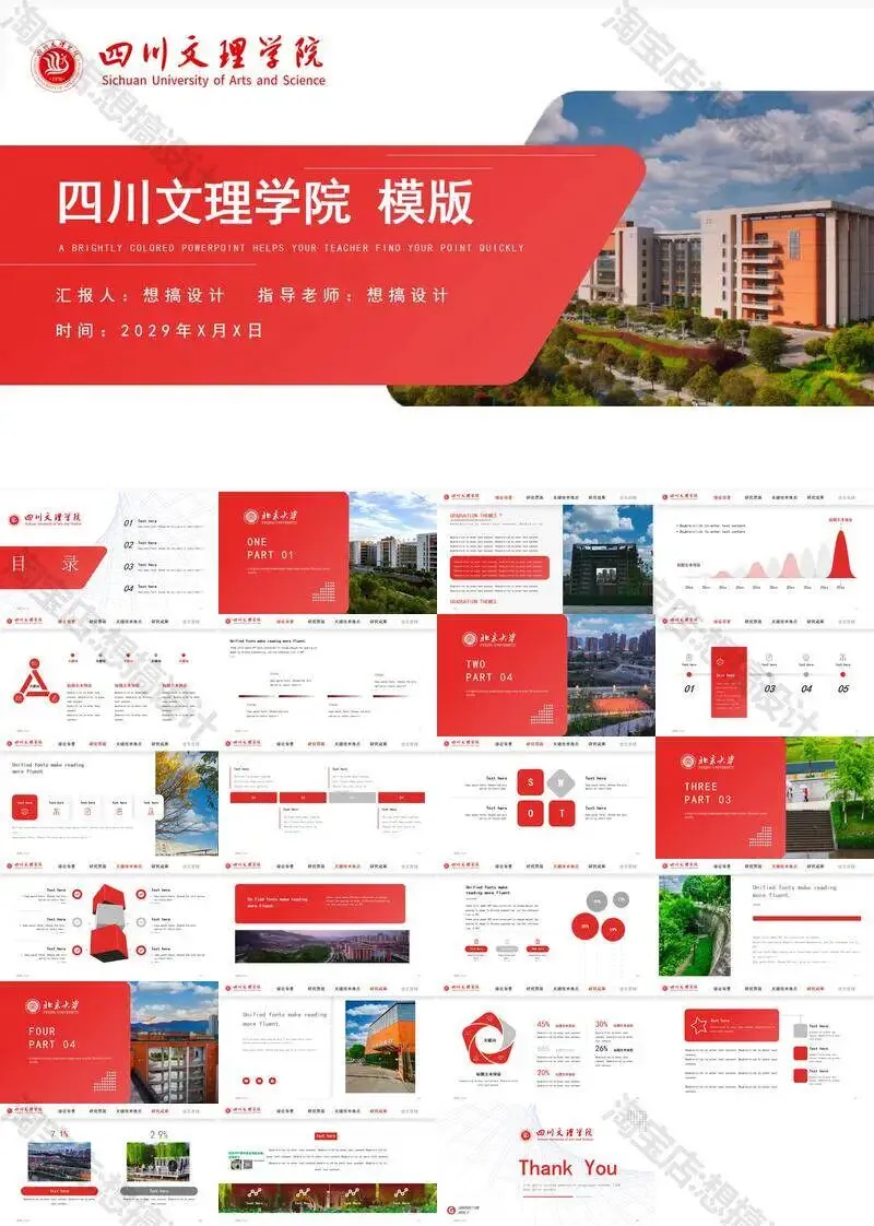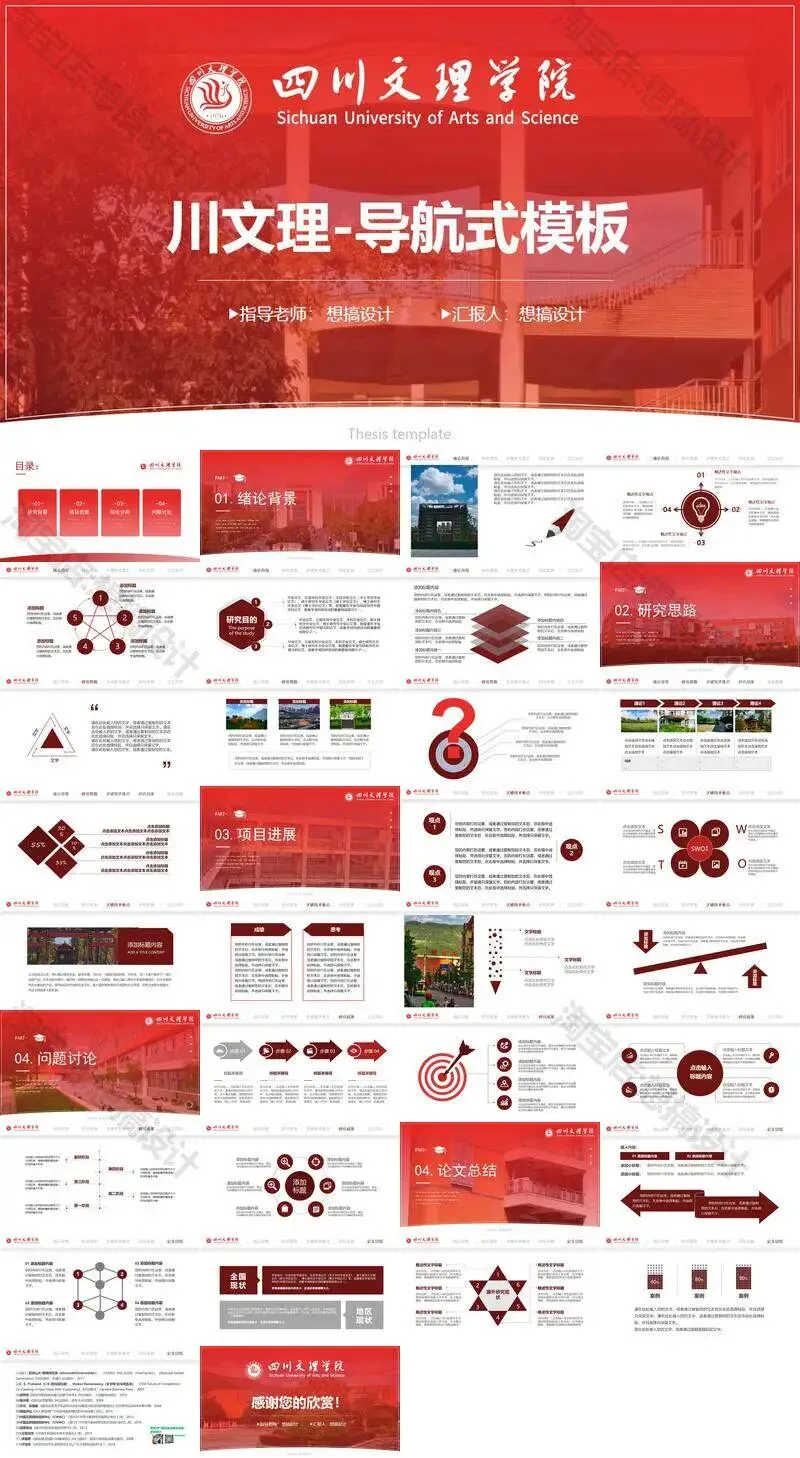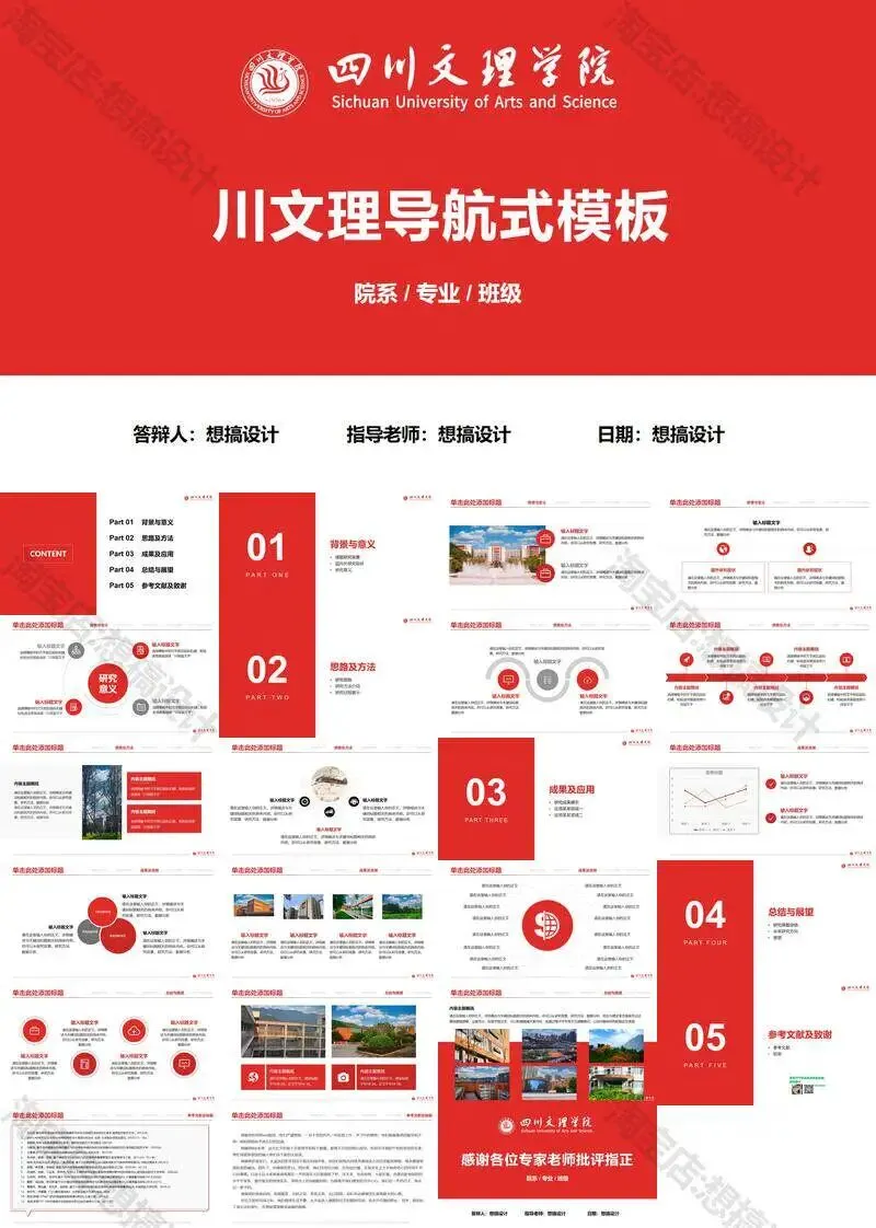 四川文理学院毕业答辩PPT模板汇报幻灯片课件总结大学生作品