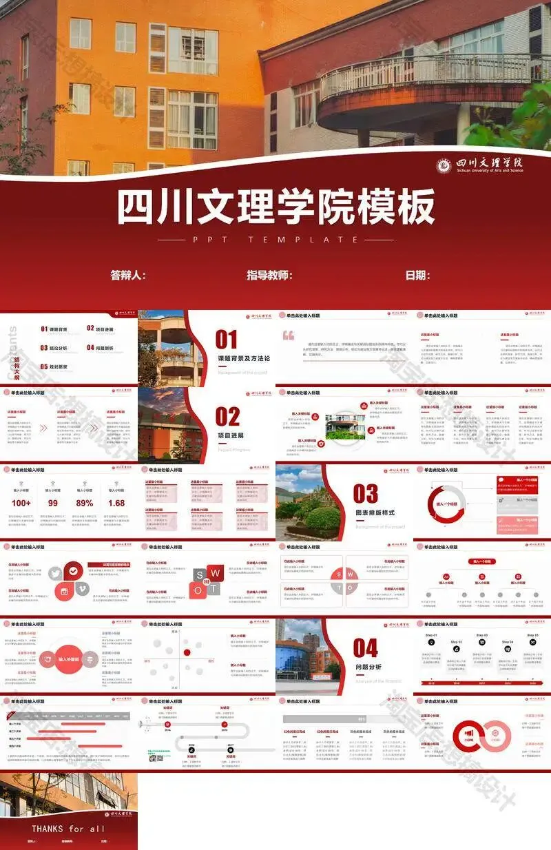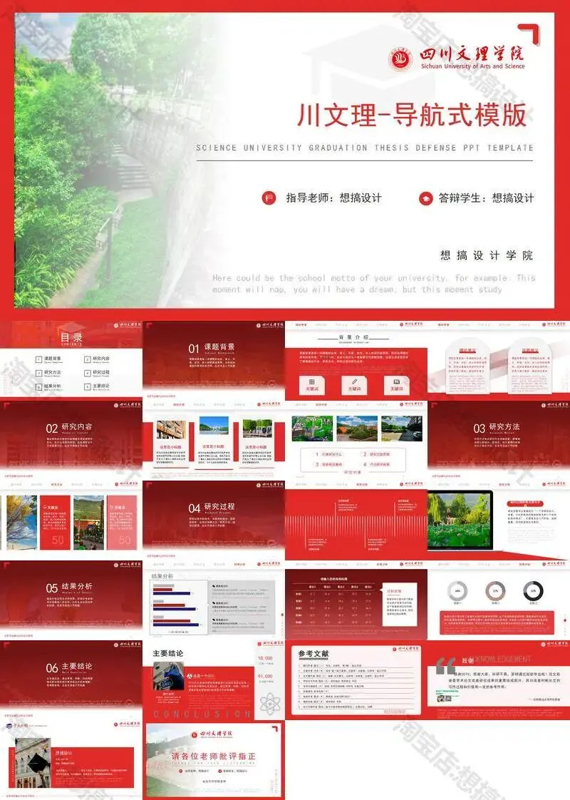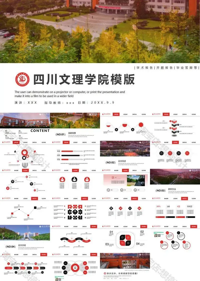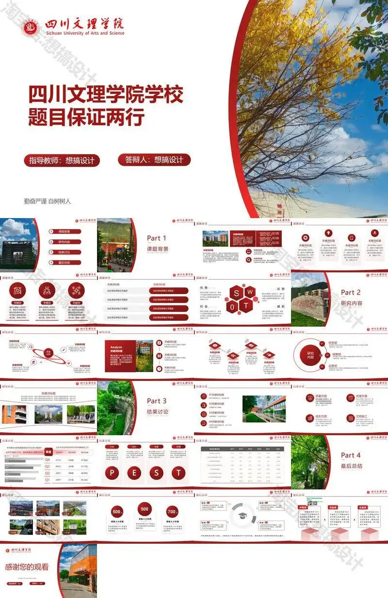 >四川文理学院毕业答辩PPT模板汇报幻灯片课件总结大学生作品