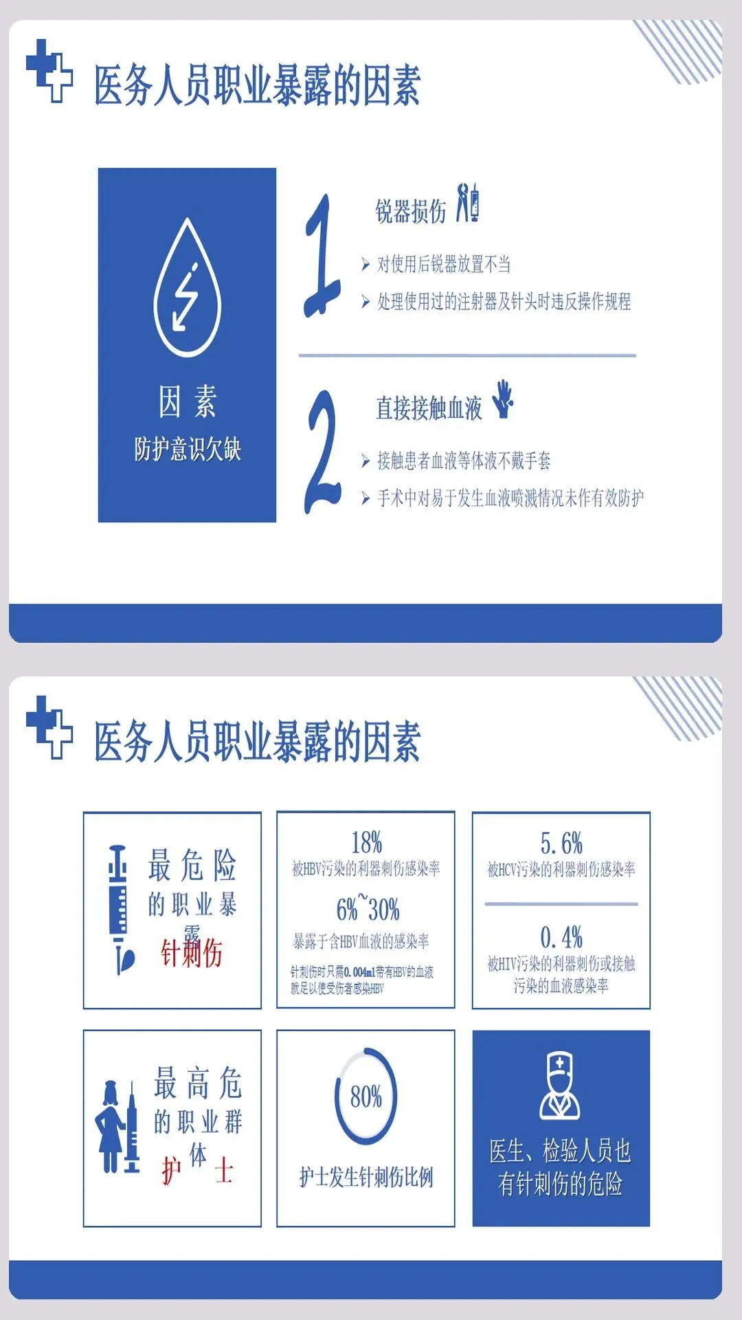 首先,什么是职业暴露?简单来说,就是在我们工作的过程中,比如打针、手术、护理时,不小心接触到了患者的血液、体液,或者被带有病毒的针头扎伤。这不仅是一次意外,更是一次潜在的感染风险。特别是针刺伤,它是我们面临的最高危情况。数据显示,护士是发生针刺伤比例最高的人群,高达80%。哪怕只是0.004毫升带有乙肝病毒的血液,都足以让我们感染。这听起来是不是很吓人?但这正是我们需要重视它的原因。