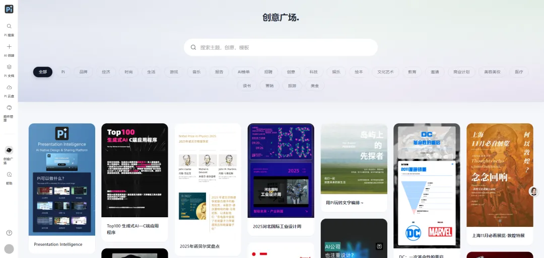 - 访问官网(pi.deepvinci.tech)或微信小程序 “Pi - 智能演示文档”,注册登录进入工作台。
