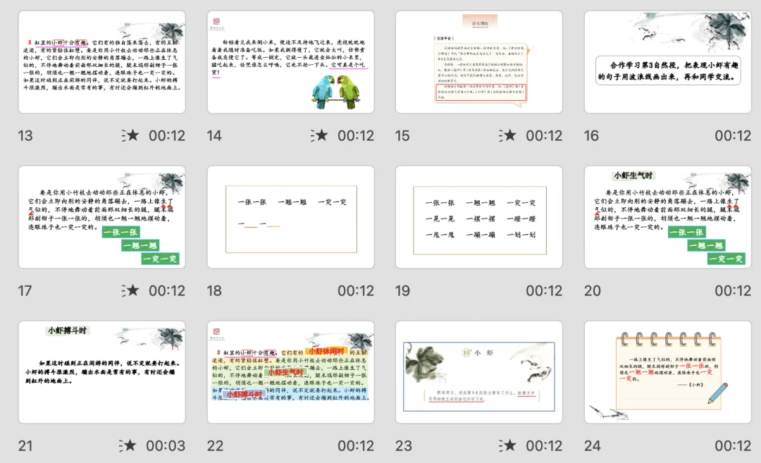 - 你们觉得这群小虾怎么样?能否用一个词语来说说?在这篇课文当中,有一个自然段,作者花了很多笔墨,就是在写小虾的有趣呢!快速浏览,是哪个自然段,找到了吗?