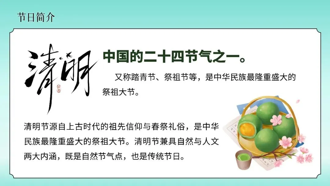 本期更新的课件为《清明时节雨纷纷》清明节主题班会课PPT,共15页。