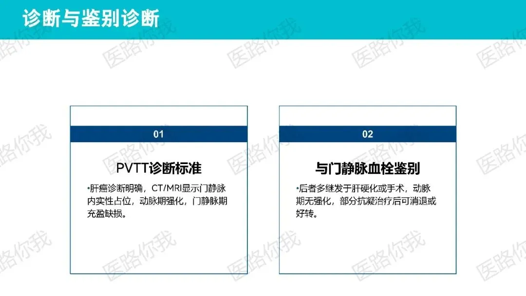 任何有效的治疗都始于精准的诊断。2026版指南首先明确了肝癌合并PVTT的诊断标准:在确诊肝癌的基础上,若影像学(CT/MRI)显示门静脉内出现实性占位,且动脉期可见强化、门静脉期充盈缺损,即可确诊。值得注意的是,指南特别强调需将PVTT与门静脉血栓相鉴别,后者多见于严重肝硬化或术后,且无强化表现。