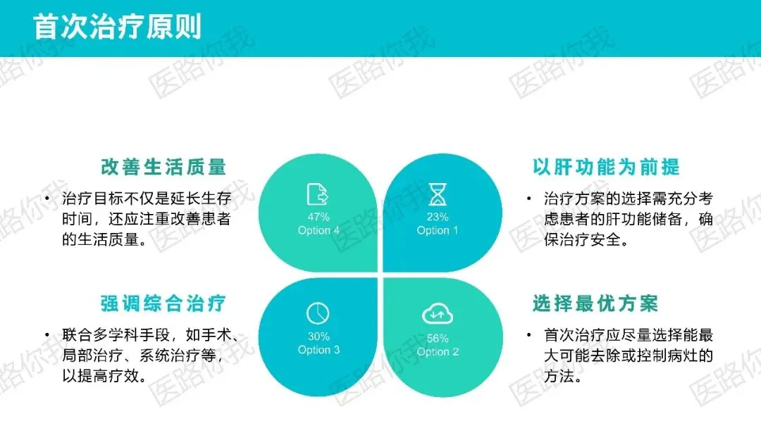 指南的核心治疗理念是:打破单一治疗的局限,建立以系统治疗为基础,联合局部治疗的综合体系。治疗路径的选择遵循“肝功能优先、分型定策”的原则。