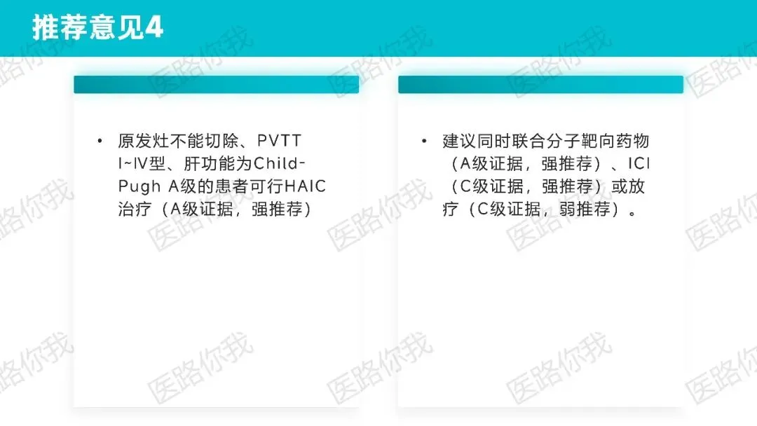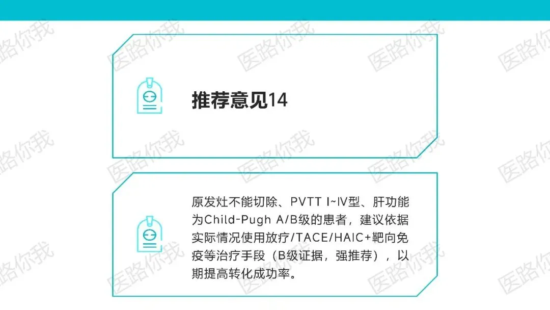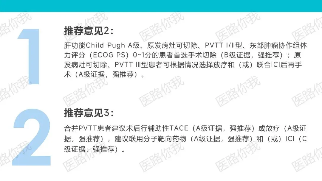 - Ⅲ型患者的策略:对于侵犯主干的Ⅲ型患者,直接手术风险高。指南推荐先行放疗、HAIC或联合免疫治疗进行“降期”,待癌栓缩小后再评估手术机会。