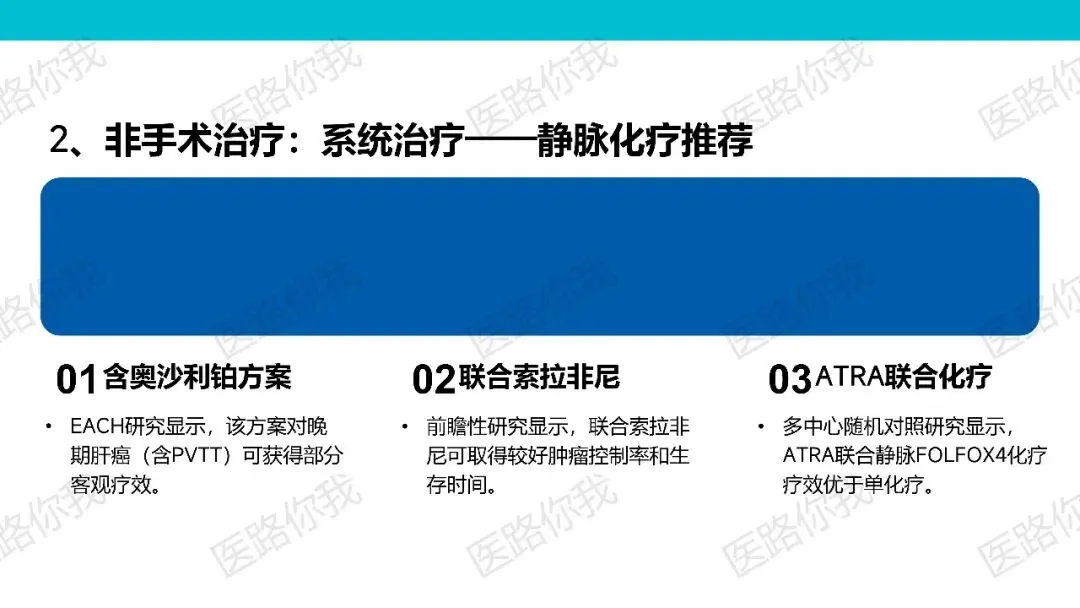 - 一线治疗:推荐“T+A”方案(阿替利珠单抗+贝伐珠单抗)、“双艾”方案(信迪利单抗+贝伐珠单抗类似物)或“双达”方案(替雷利珠单抗+仑伐替尼)等。这些方案在ORR和OS上均显著优于传统的索拉非尼。