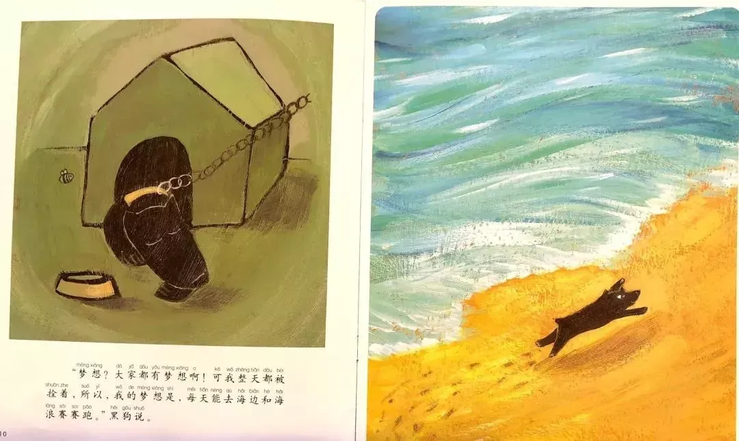 “梦想?大家都有梦想啊!可我整天都被拴着,所以,我的梦想是,每天能去海边和海浪赛跑。”黑狗说。