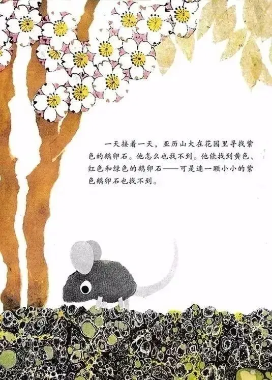 从此以后,亚历山大每天都在花园里寻找紫色的鹅卵石,可是他怎么也找不到。