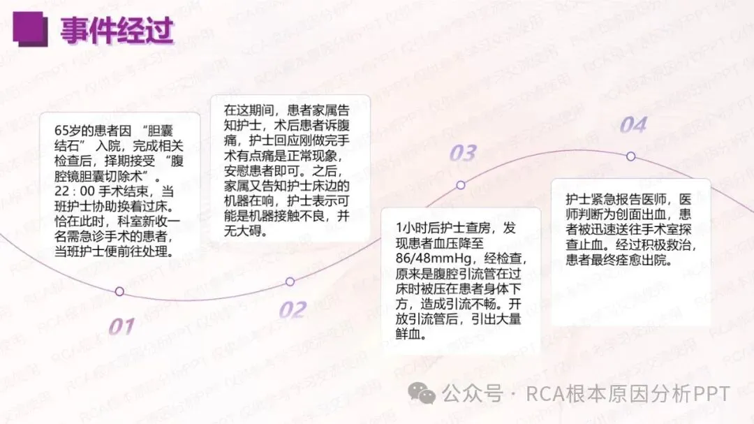 在临床护理工作中,每一个细节都关乎患者的健康与安危。一次对术后患者病情的精准把控,可能成为患者康复的关键;而一次疏忽,也可能引发严重后果。今天要汇报的,是一起术后病情观察不及时导致患者病情延误的不良事件。通过复盘这起事件的经过,深入剖析背后的原因,提出针对性的整改措施,并进行全面的总结思考,期望能从中汲取经验教训,不断优化护理工作流程,提升护理质量,为患者提供更安全、更优质的护理服务。