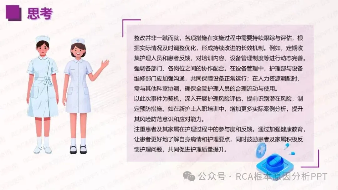 持续跟踪评估:整改并非一劳永逸,各项措施在实施过程中需持续跟踪与评估,根据实际情况及时调整优化,形成持续改进的长效机制。例如,定期收集护理人员和患者反馈,对培训内容、设备管理制度等进行动态完善。