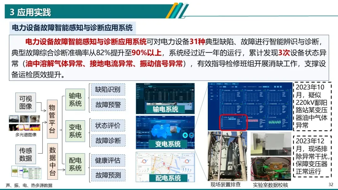 - 设备故障智能感知与诊断系统:典型故障综合诊断准确率从82%提升至90%以上,累计发现3次设备异常,有效指导检修工作。