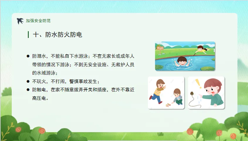 三防:防溺水、不玩火、防触电。