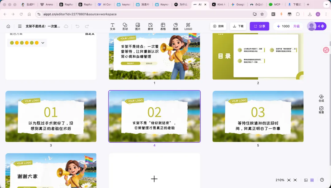 - 生成后可以在线删页面、改文字,不满意的地方随时调整