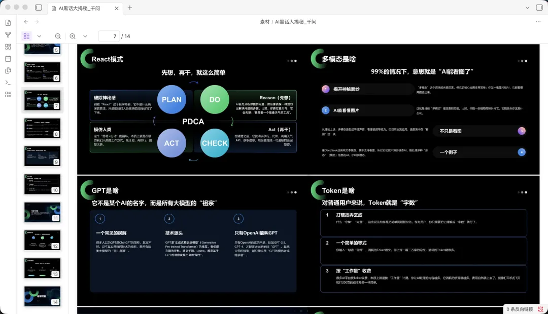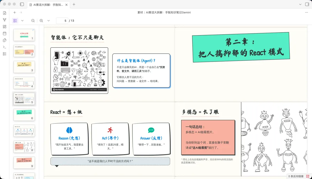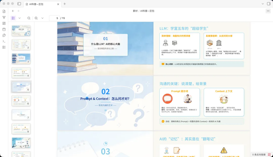 然后生成出来我人直接傻了。 完全没有理我的提示词,我要的手账风科普感,它给我生成了一个最最普通的大路货商务风,内容还砍了一半。