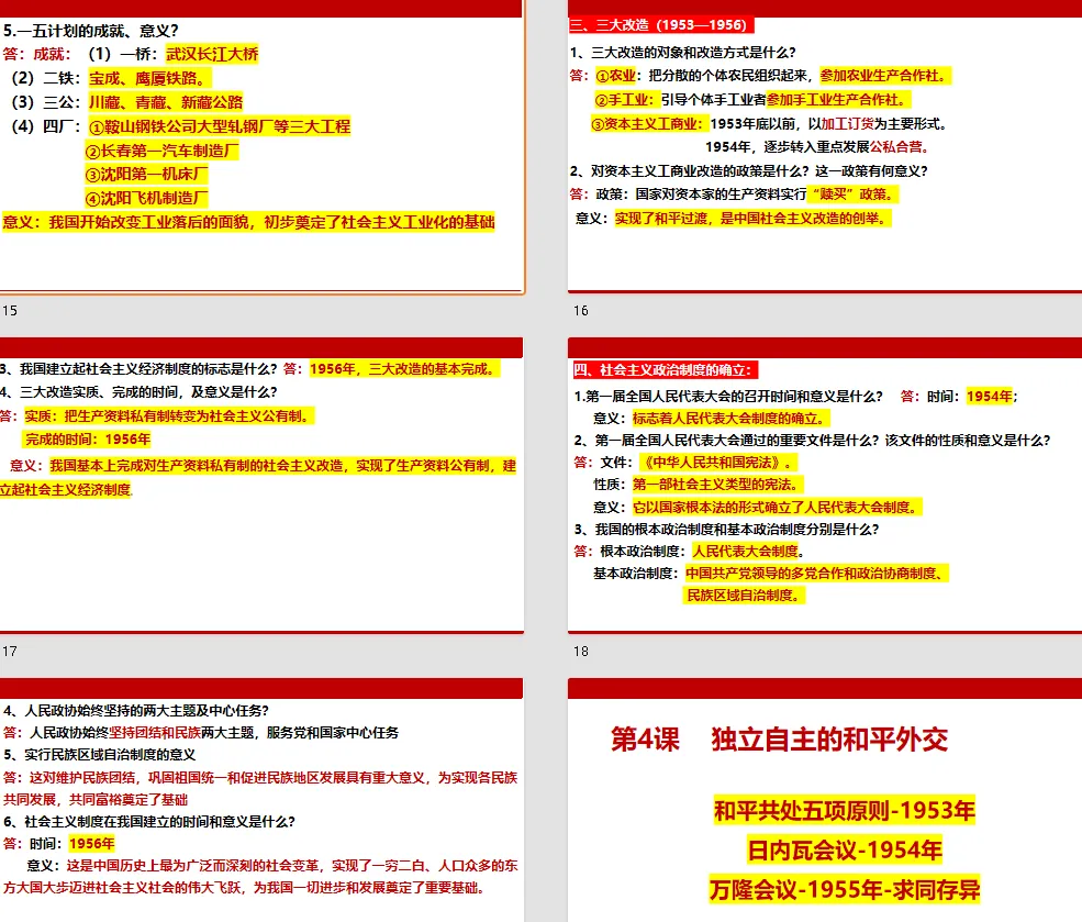 八下历史背诵知识点PPT版本(方便课前背诵)