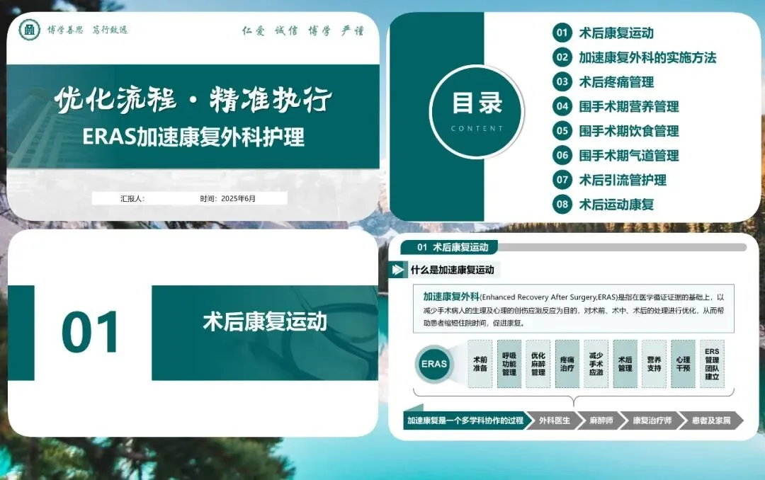 ERAS 不是单一技术的叠加,而是流程优化与精准执行的结合。把每一项措施落实到位,就能让患者更安全、更舒适、更快速地康复。我的分享完毕,谢谢大家。