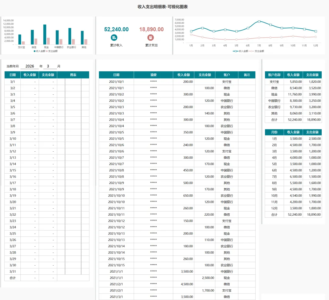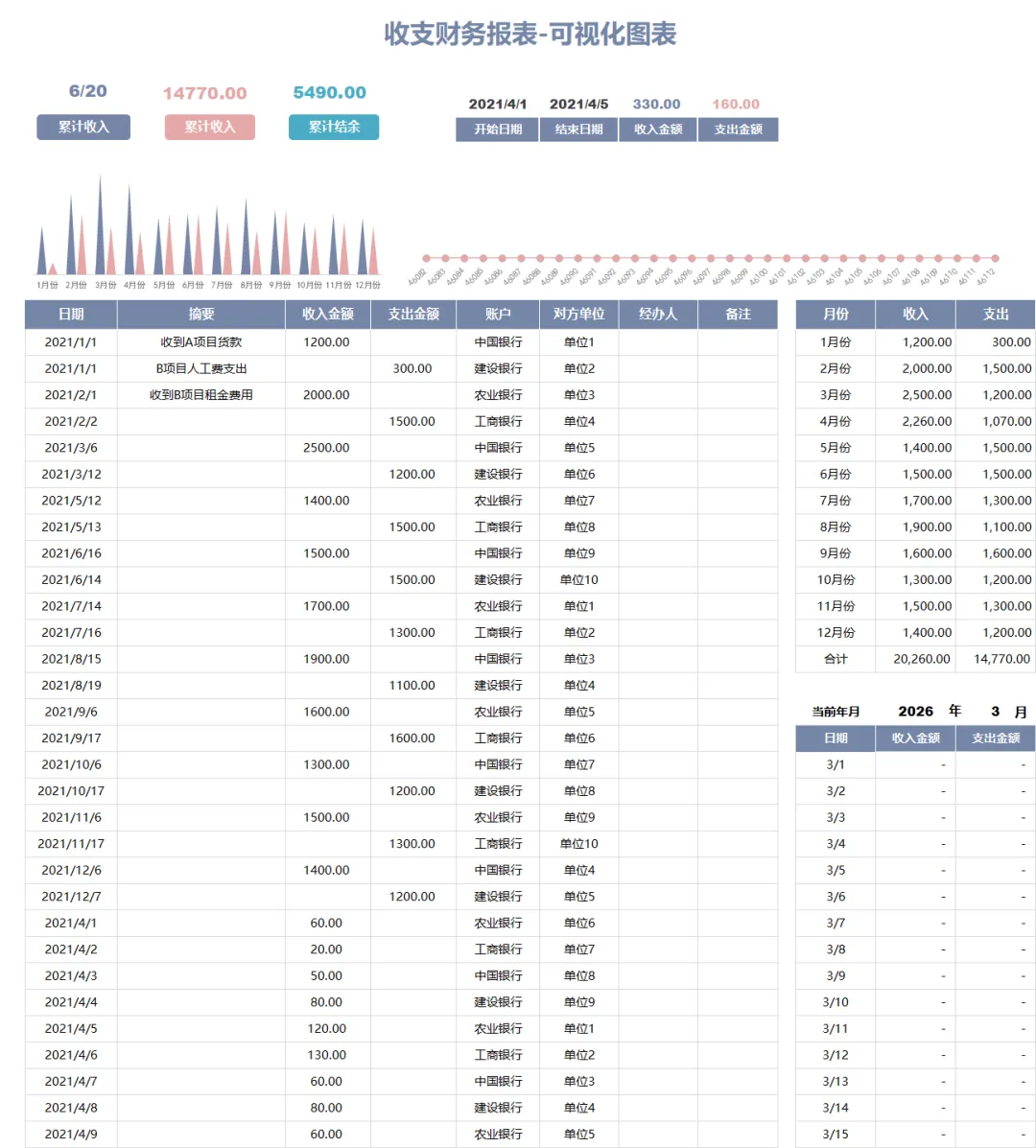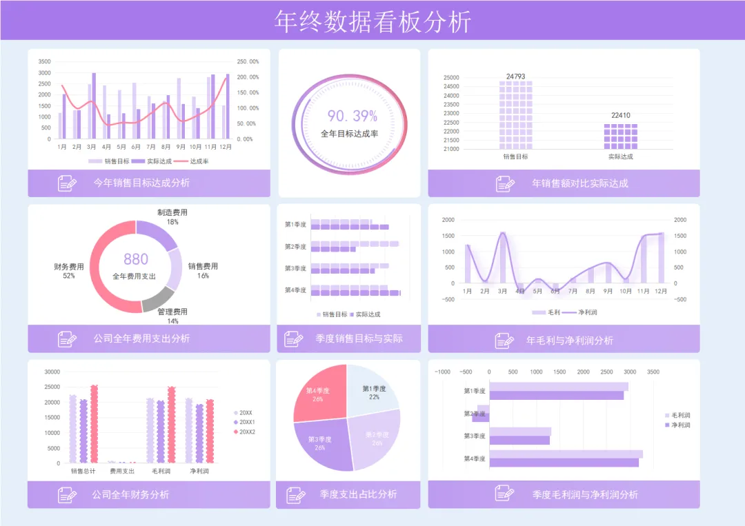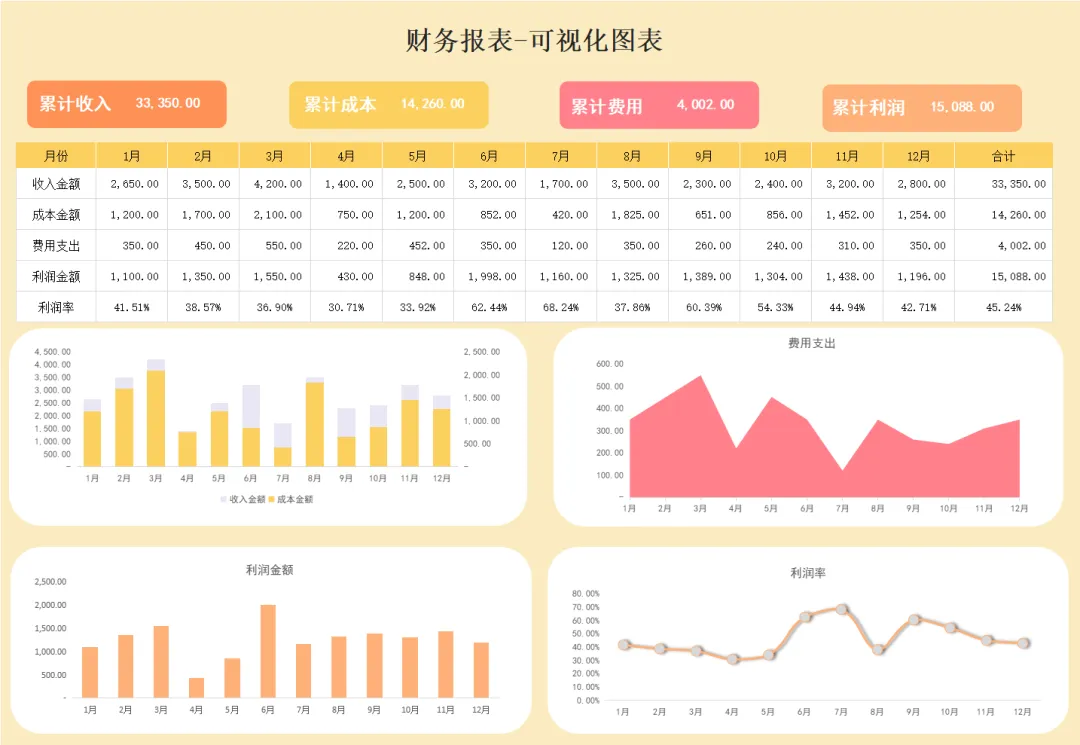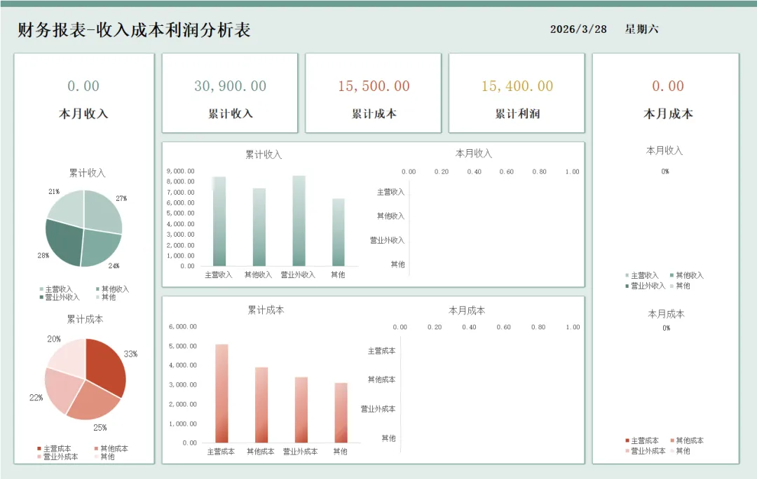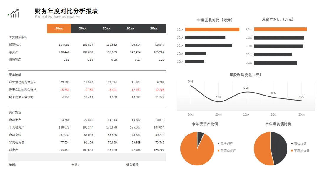 18套可视化财务报表模板,就是针对这几个高频场景的,汇总表、收支表、利润表、现金流量表等常用报表已经预设好公式,数据源录入后自动汇总生成,再也不用反复复制粘贴。格式统一规范,打印出来版式整齐,可以直接做工作汇报使用,模板结构稳定,每月替换数据即可复用,省去重复调整的时间。直接套用,财务人真的少加班!