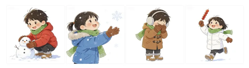 用 AI 生成几组可爱的卡通小孩,挑最贴合氛围的抠图放进去。