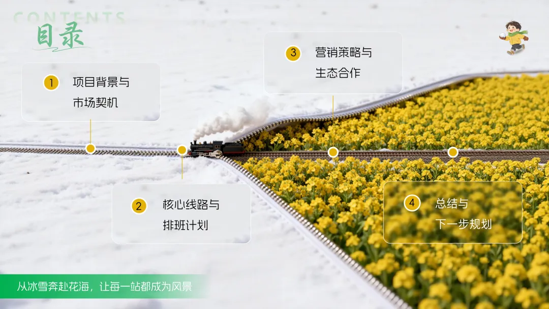 冬天被拉到一边,春天扑面而来 ——有仪式感、有惊喜感、有视觉冲击力,也完美契合 “开往春天” 的主题。