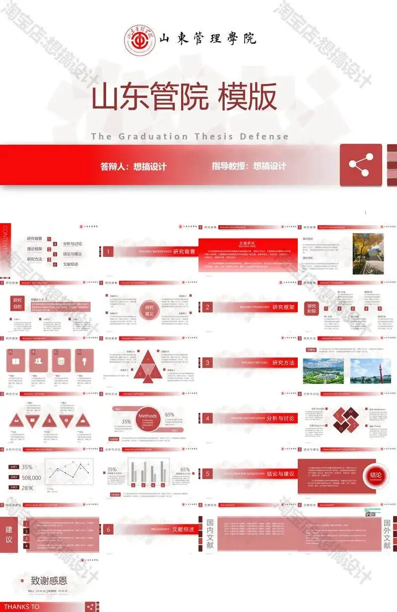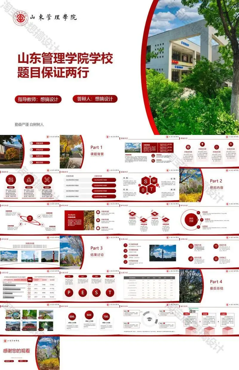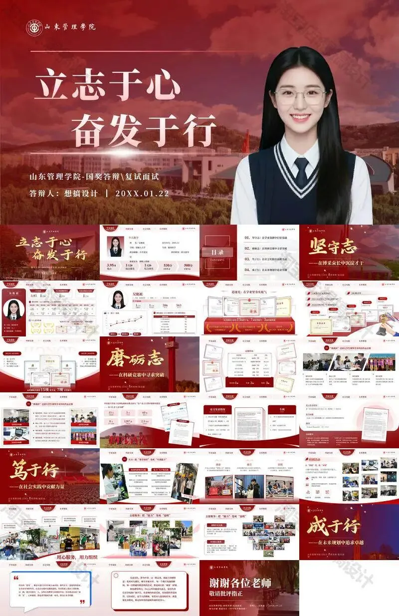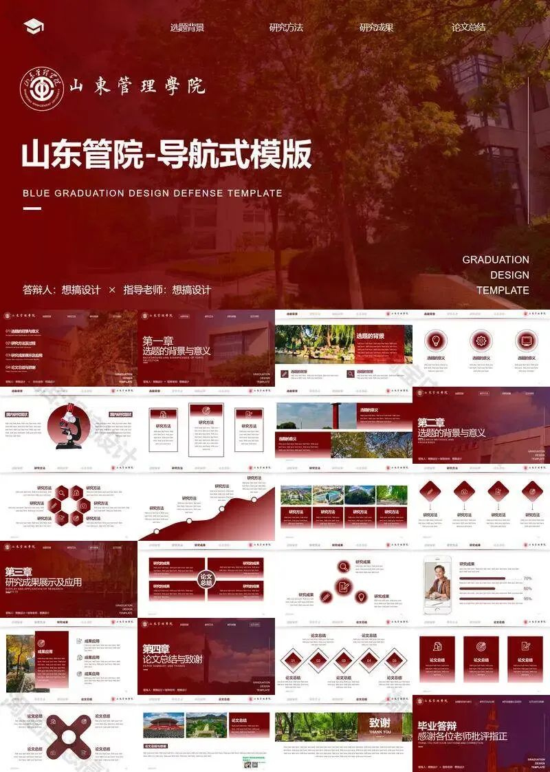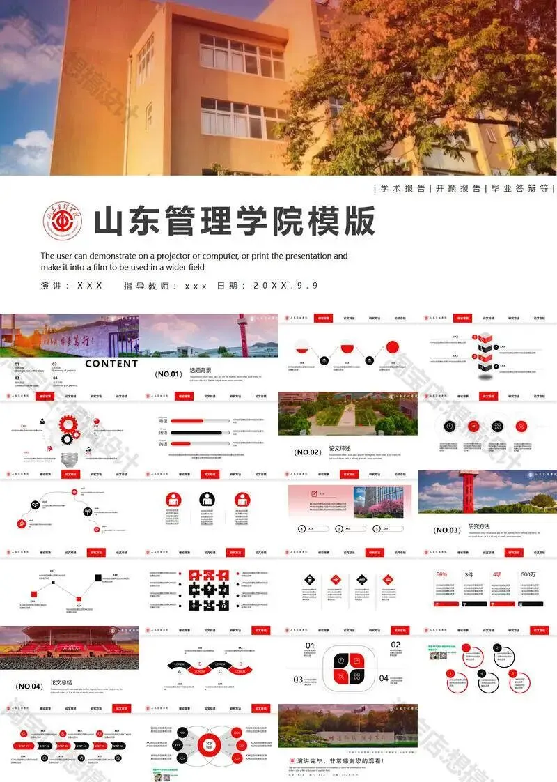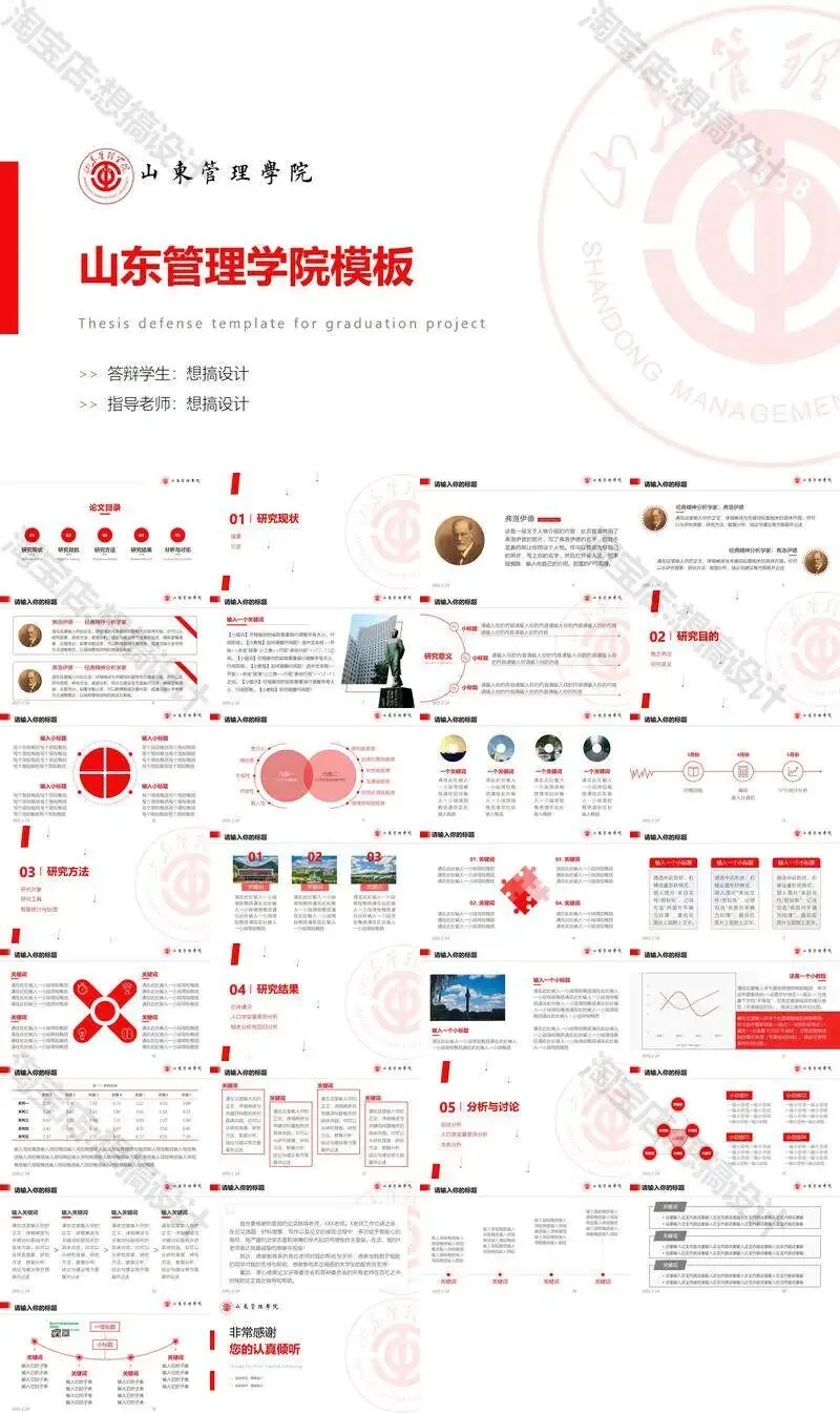 >山东管理学院毕业答辩PPT模板汇报幻灯片课件总结大学生作品