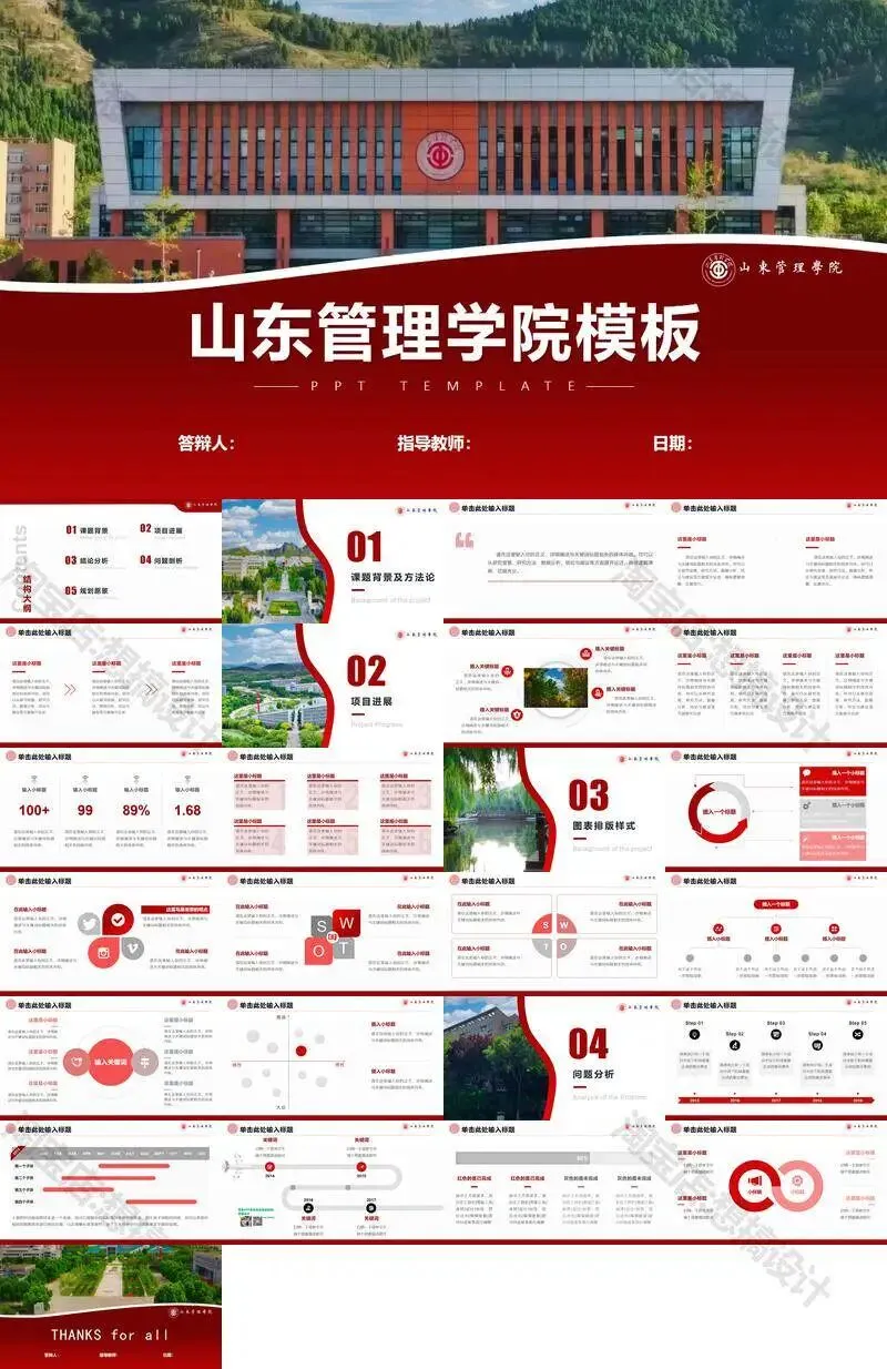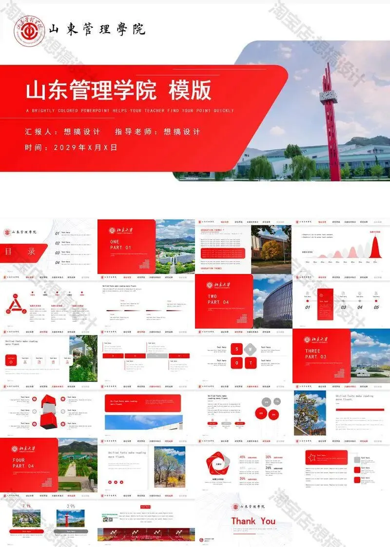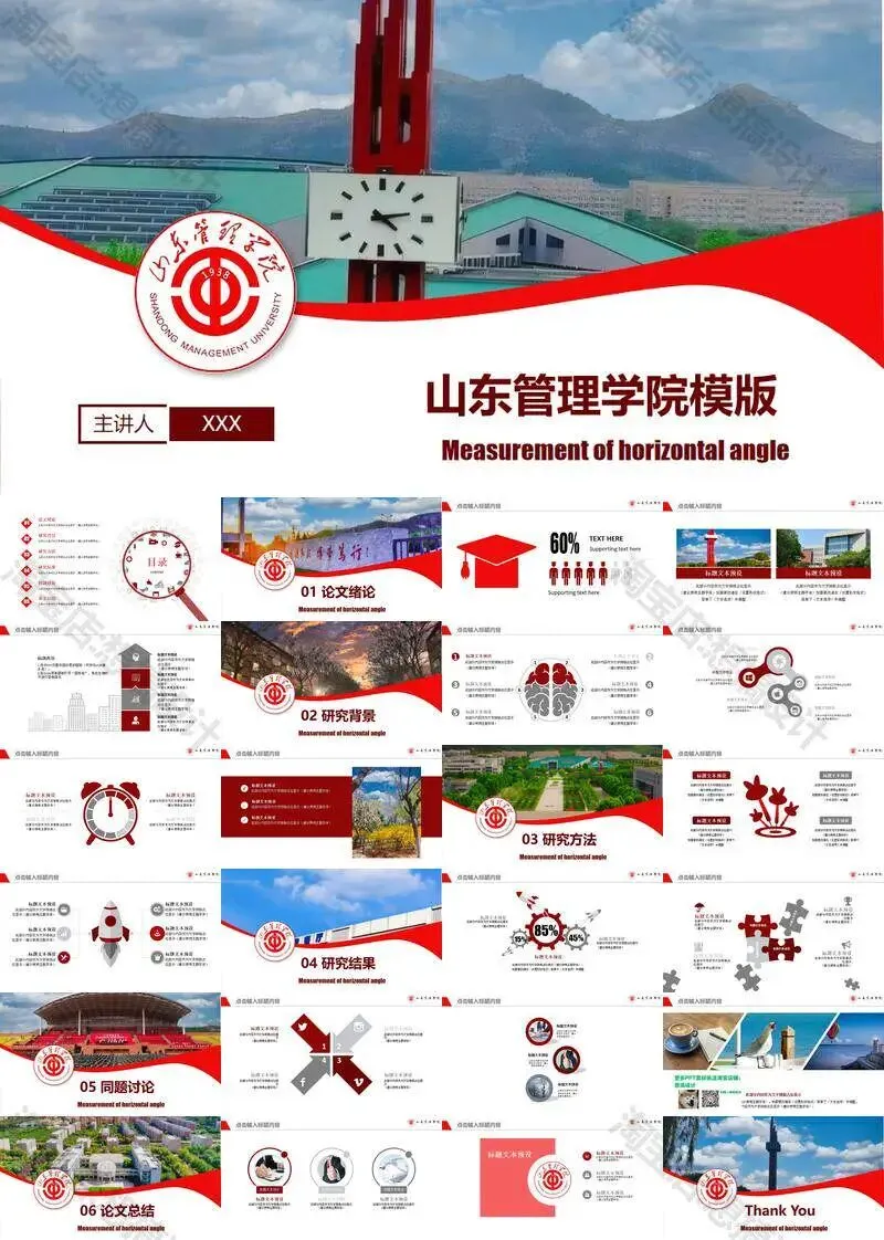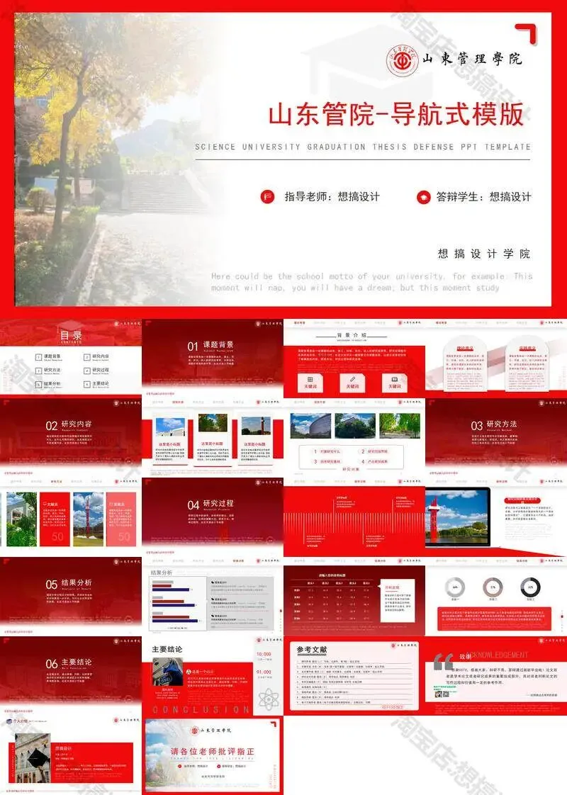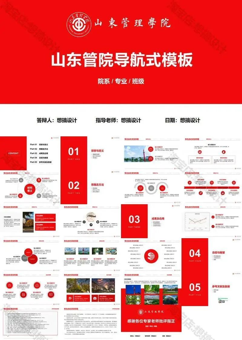 >山东管理学院毕业答辩PPT模板汇报幻灯片课件总结大学生作品