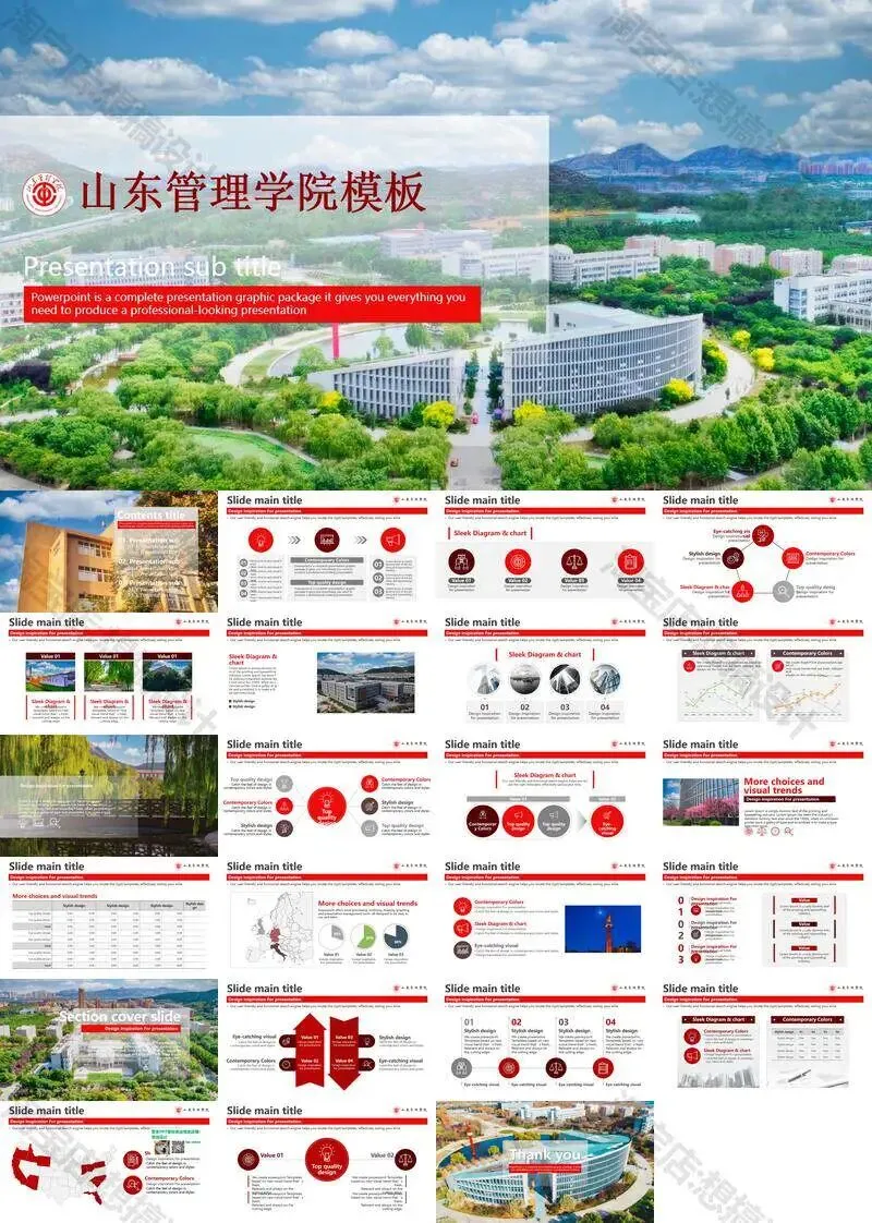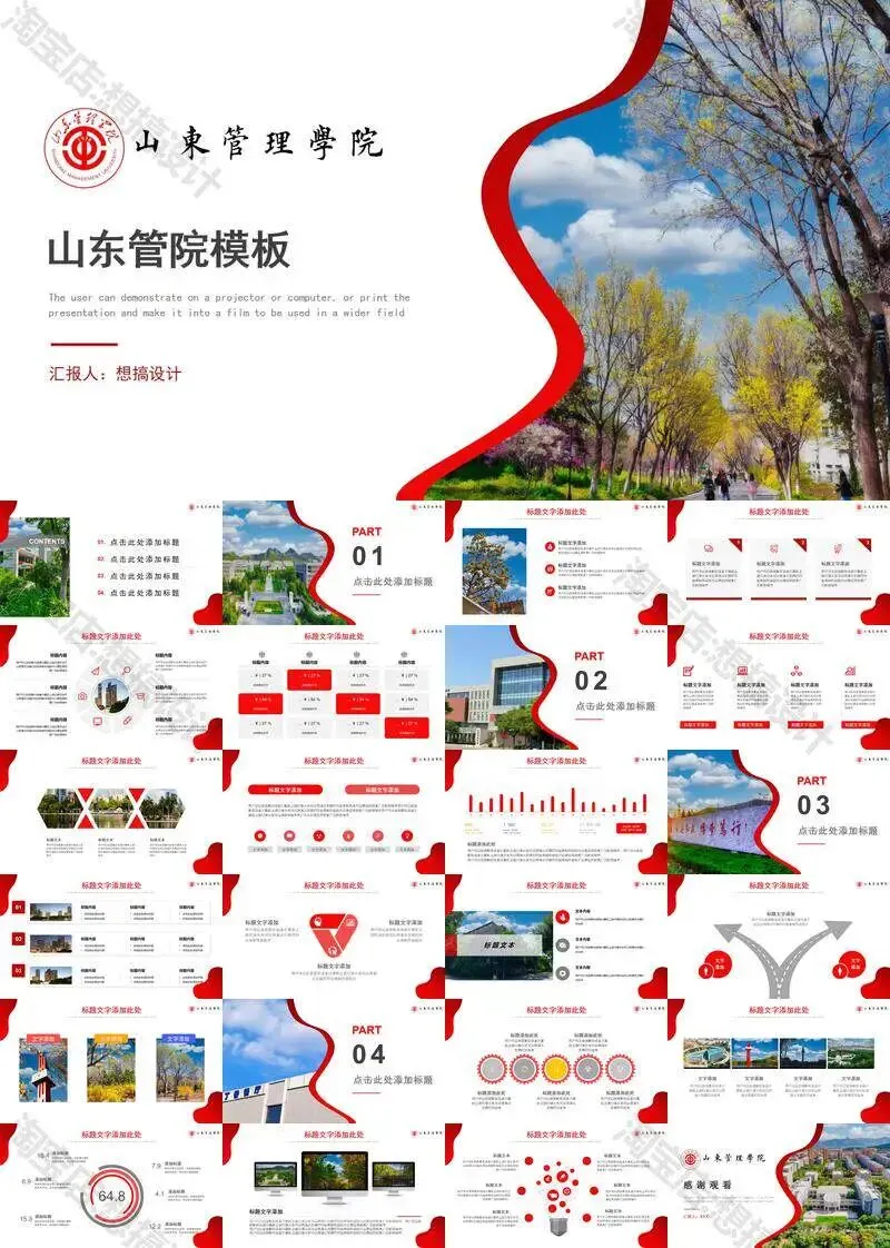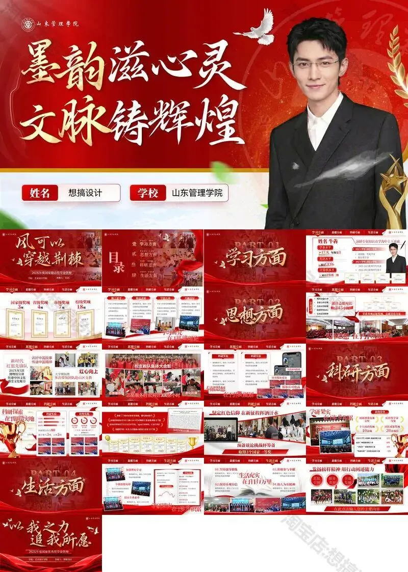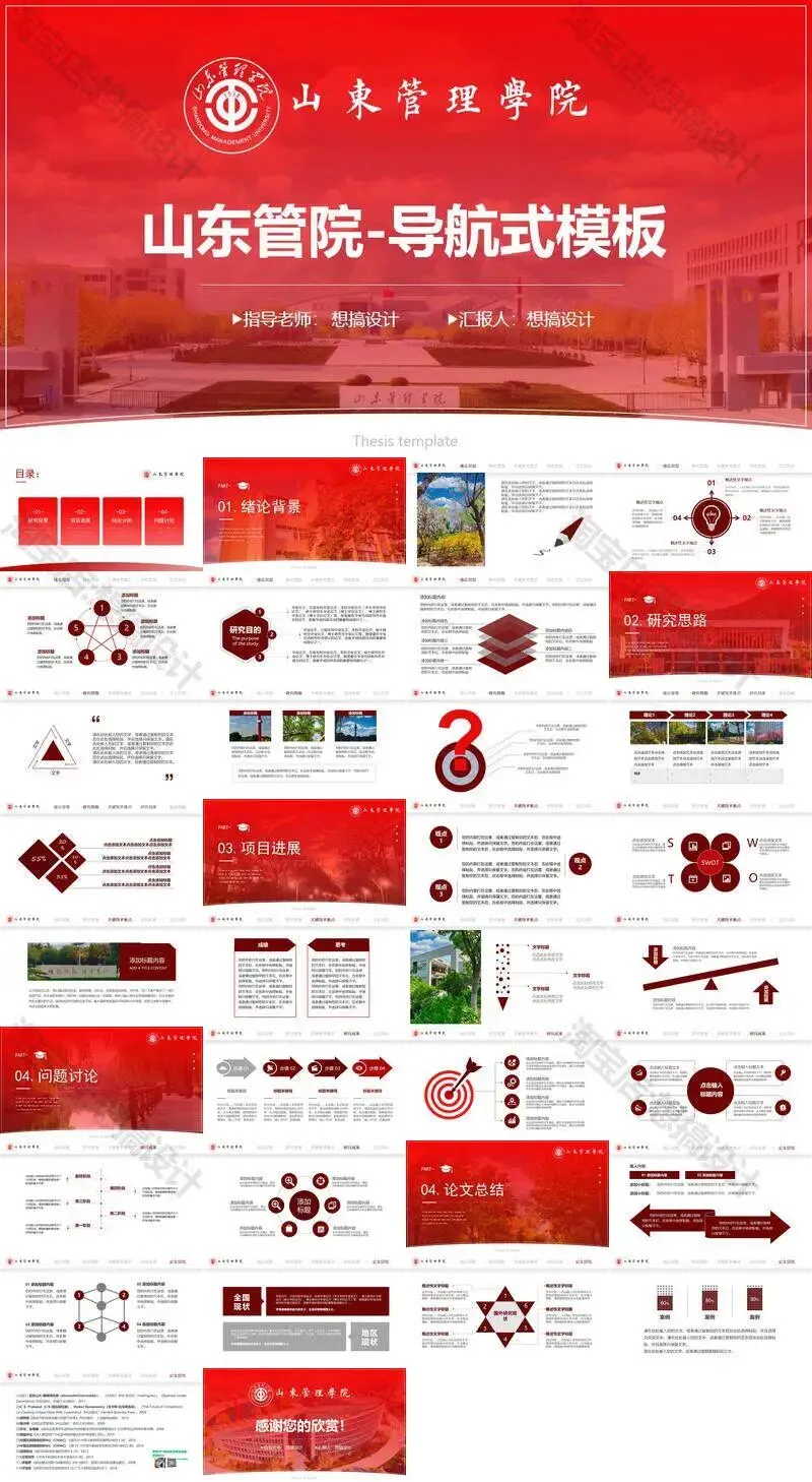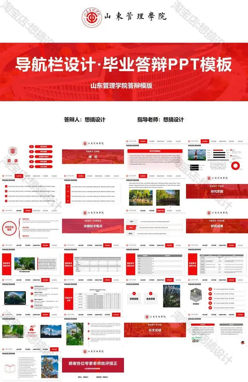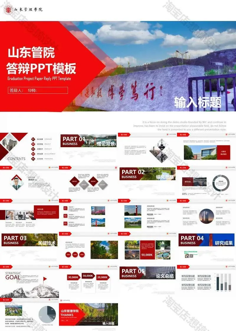 >山东管理学院毕业答辩PPT模板汇报幻灯片课件总结大学生作品