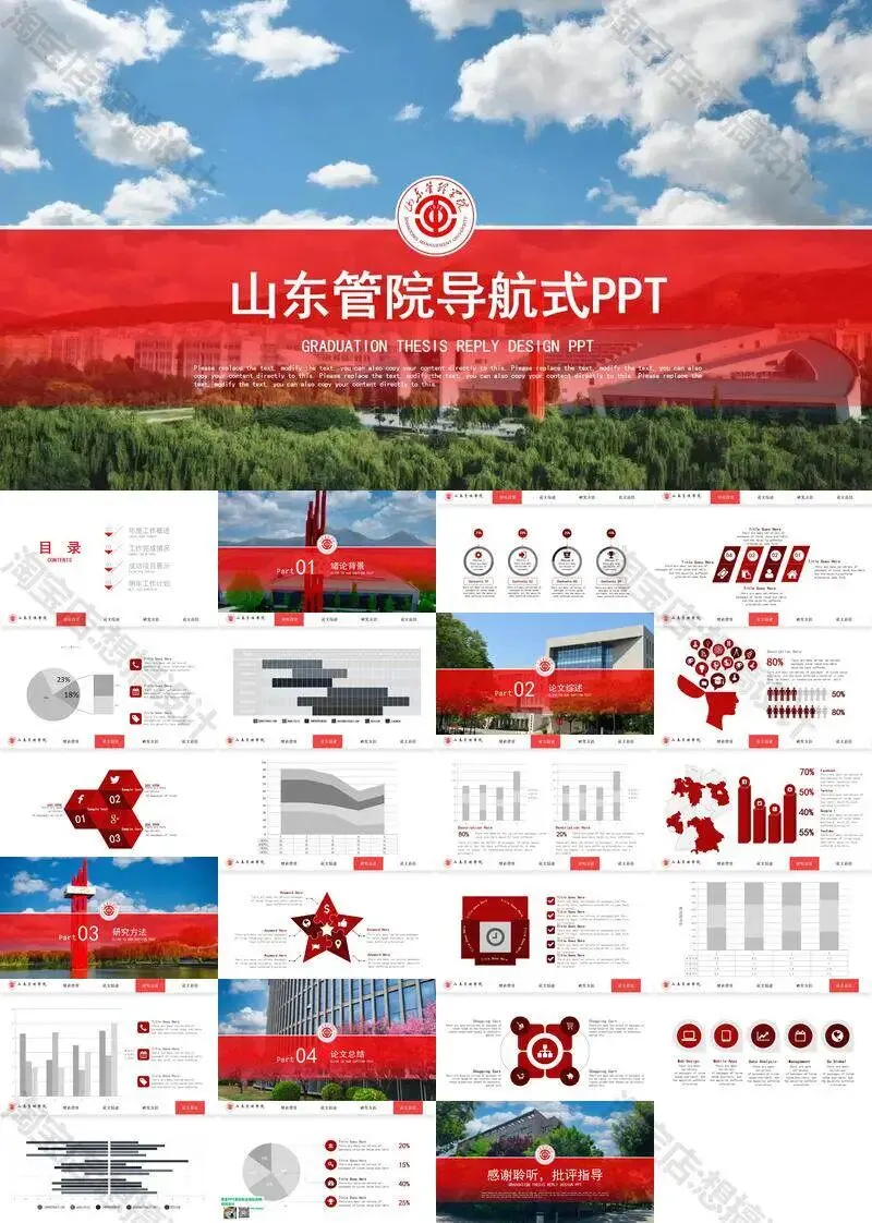 山东管理学院毕业答辩PPT模板汇报幻灯片课件总结大学生作品