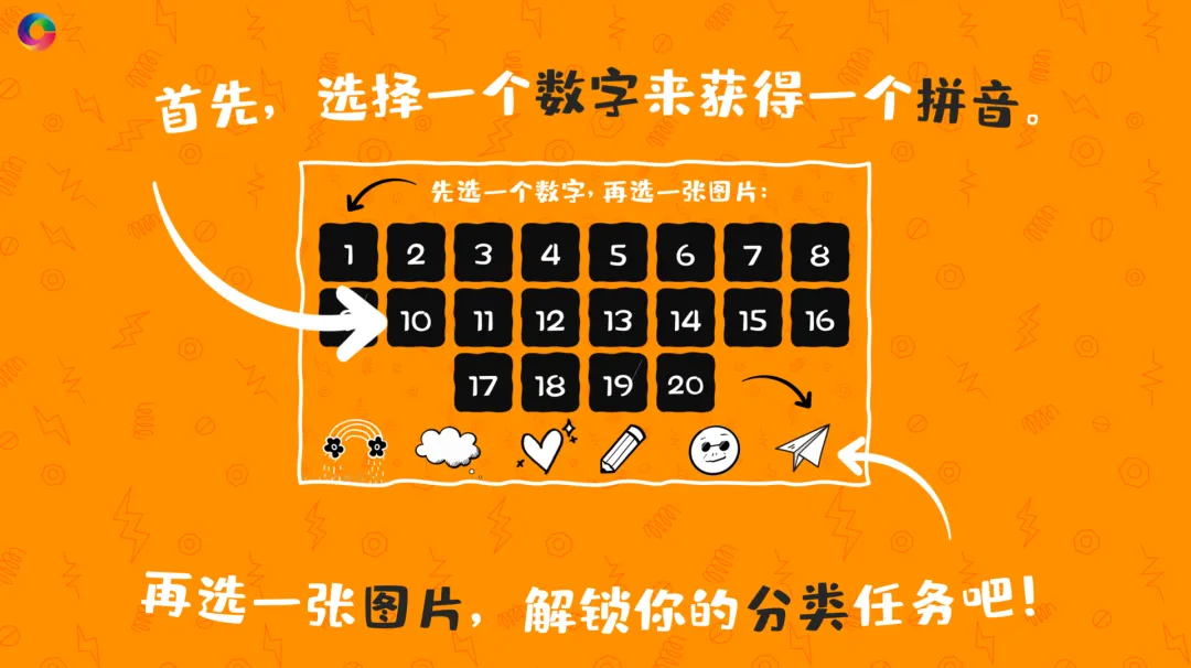 核心玩法超有趣,用 “随机解锁任务” 的形式激发学生的探索欲。步骤简单又充满趣味,课堂上手零难度!第一步,学生选一个数字,就能随机获得一个拼音,课件内置 B、P、M、F、Sh、Zh、Q、X 等多个基础拼音,覆盖汉语基础拼读重点;第二步,再选一个图标,解锁对应的分类任务,从基础的食物、城市、动物,到拓展的颜色、国家、职业,不同分类主题随机开启,新鲜感拉满。课件还搭配了清晰的示例引导,比如抽到拼音sh,就需要分别为 “食物、城市、动物” 三类各写一个含该拼音的内容,比如:生菜、上海、狮子。低年级学生也能快速上手,轻松掌握游戏规则。