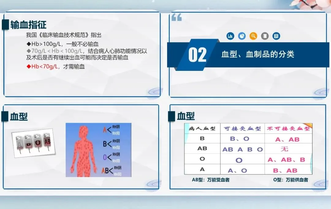 临床输血遵循基本原则,可输可不输坚决不输,能少输不多输,优先成分血,优先自体血,输血前签署知情同意书,充分告知利弊。输血指征以血红蛋白为参考,结合病情与心肺功能综合判断。
