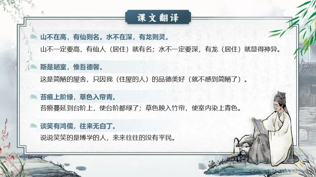 【免费分享教赛PPT模版】七下《陋室铭》精美PPT展示
