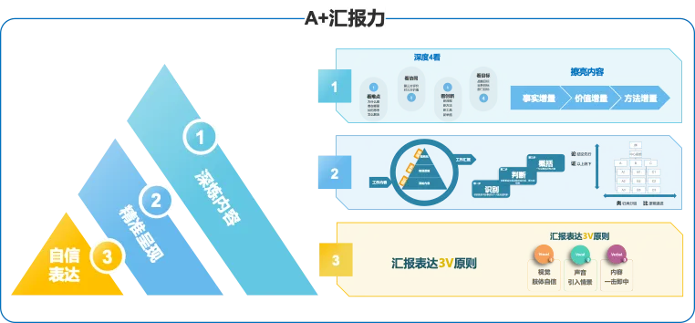 《A+汇报力》课程将理论化为思考工具,将那些传说中打动领导的汇报作为案例,将汇报转变为驱动组织发展与决策优化的宝贵输入。