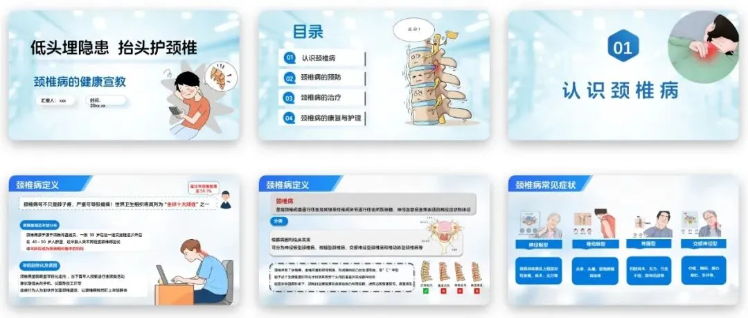 颈椎病的健康宣教PPT,讲解颈椎病康复期定期复查的核心要求与项目,帮助患者做好康复期的规范管理,促进病情恢复,预防病情复发。